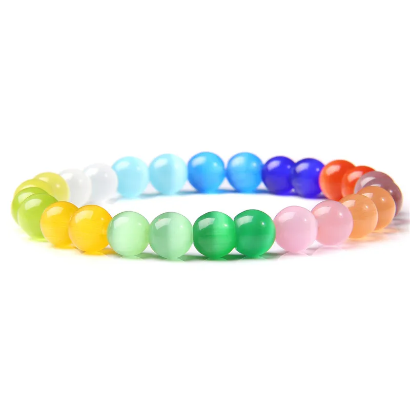 Модный разноцветный браслет кошачий глаз, гладкий яркий опал, 7 чак...