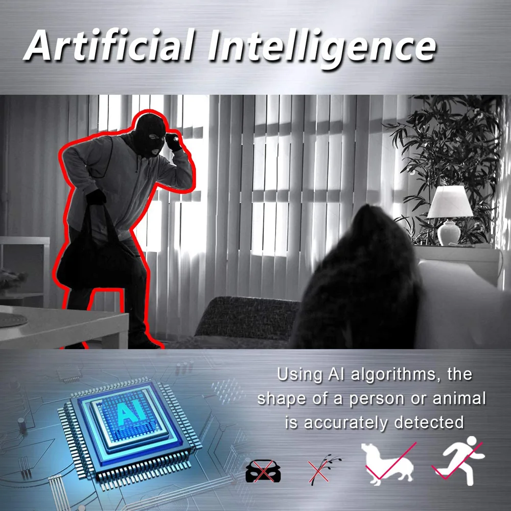 6. Обнаружение ИИ:Оповещение только при активности человека, что делает его более точным! (Уменьшить неприятности, вызванные ветром, стеклом или животными, услуги обнаружения ИИ человека предоставляются и заряжаются третьей вечерние Ной)