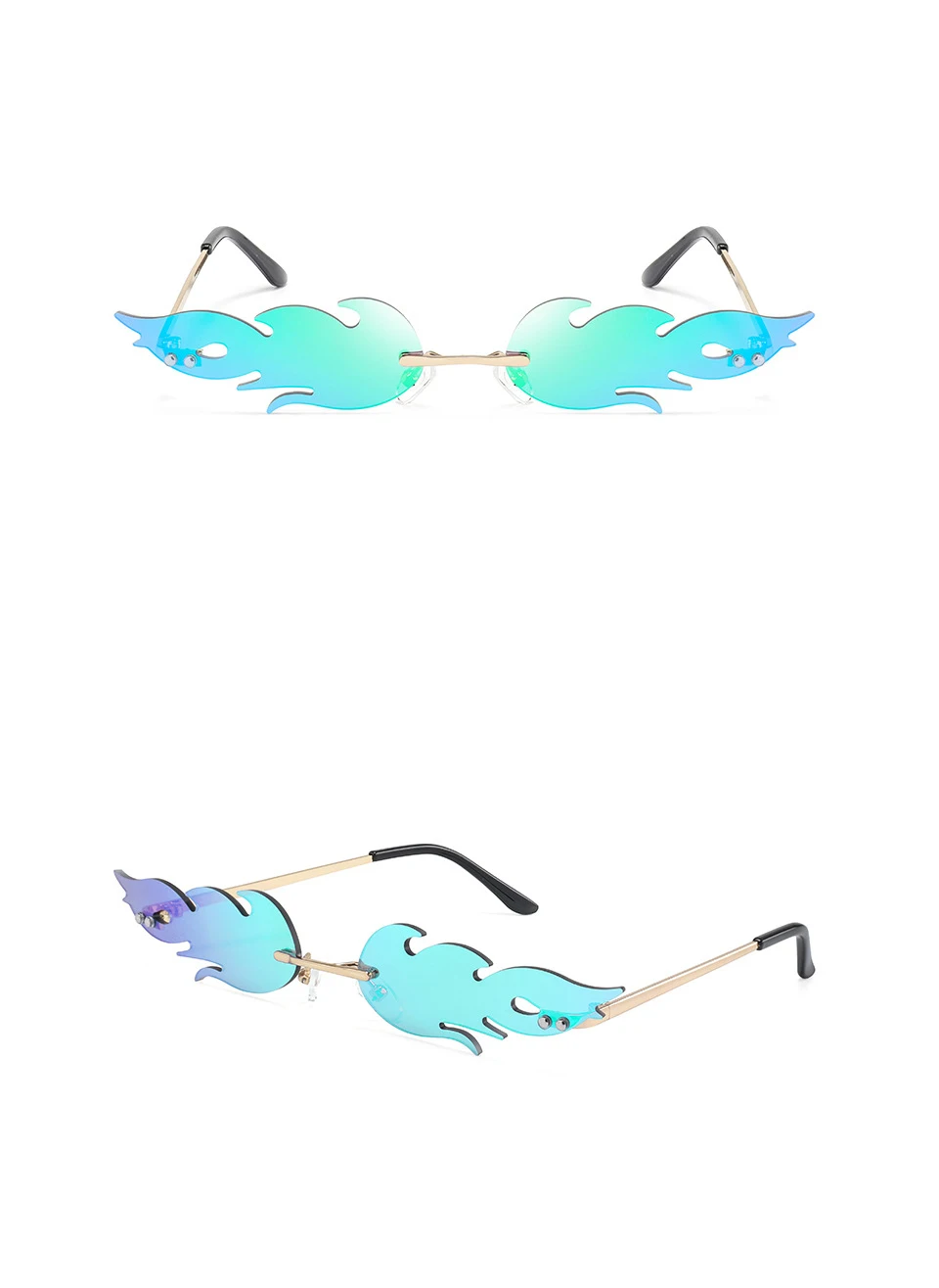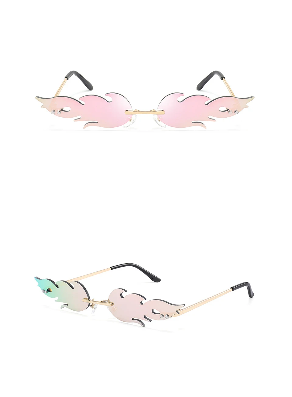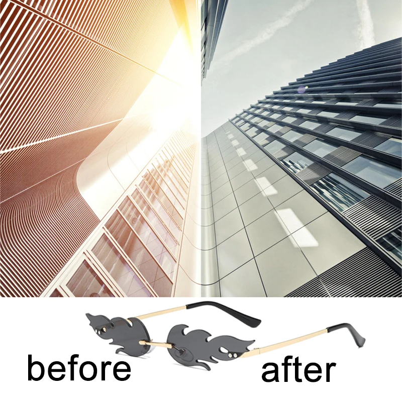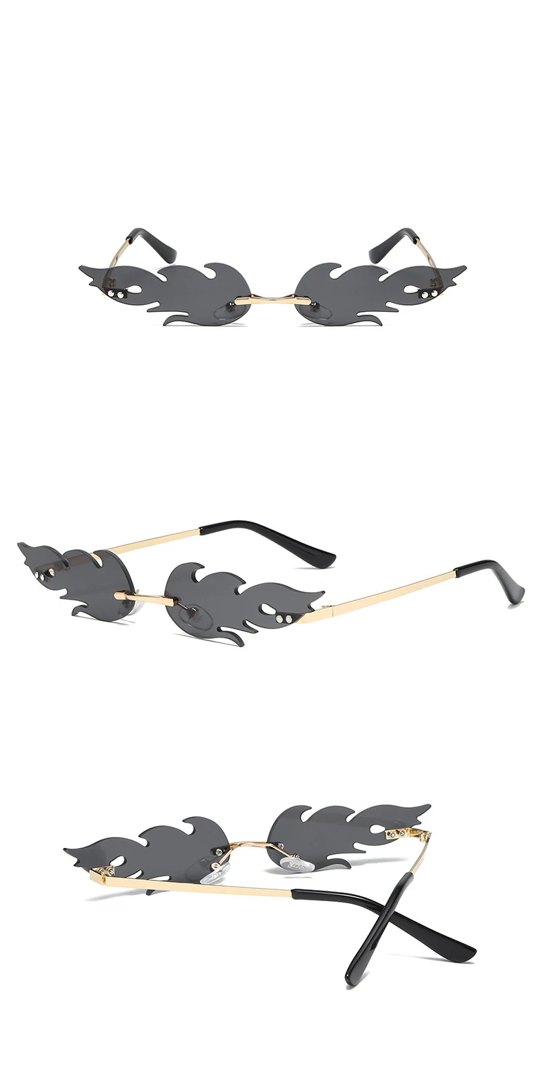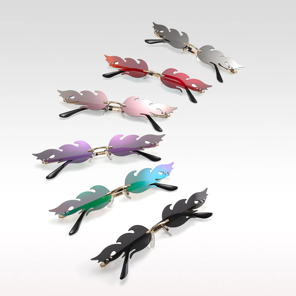 Солнцезащитные очки без оправы с волнистыми линзами, очки с огненны...