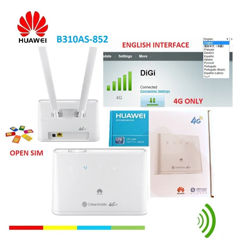 Разблокированный Huawei B310As-852 Mobile 4G беспроводной VOIP беспроводной маршрутизатор LTE FDD B3B7B8 90018001900230025002600 МГц, который не привязан к оператору сотовой связи, B38B39B40B41