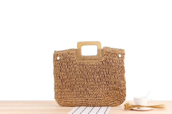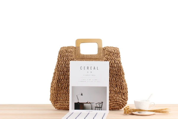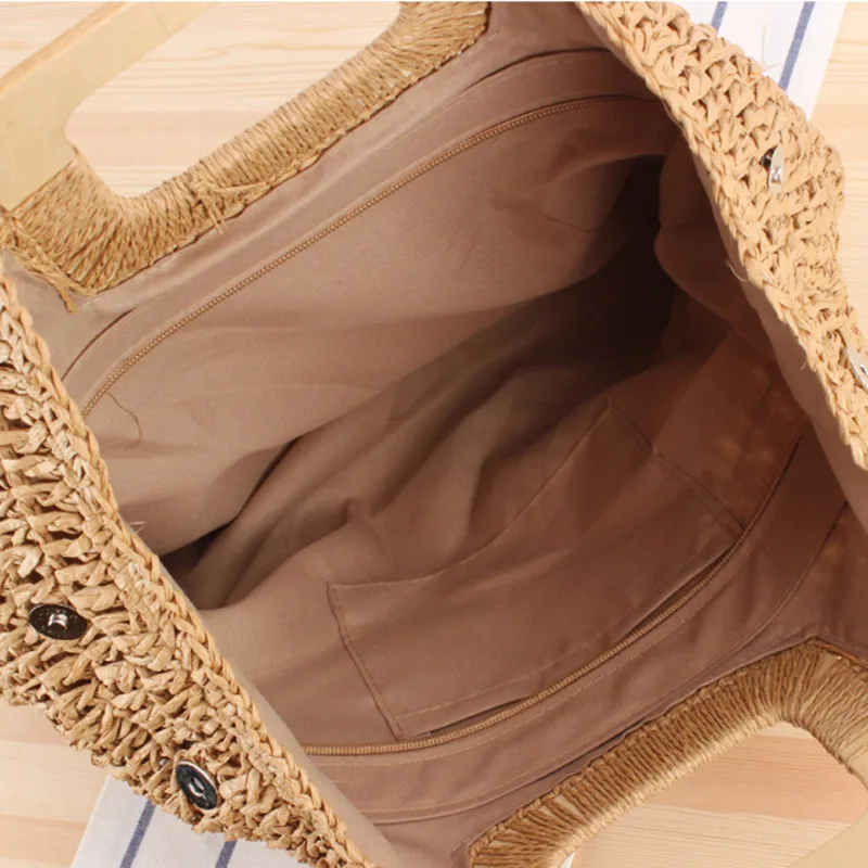Портативная плетеная ручная сумочка сделай сам, вместительная Соломенная пляжная Праздничная сумка с деревянными ручками и отсеками