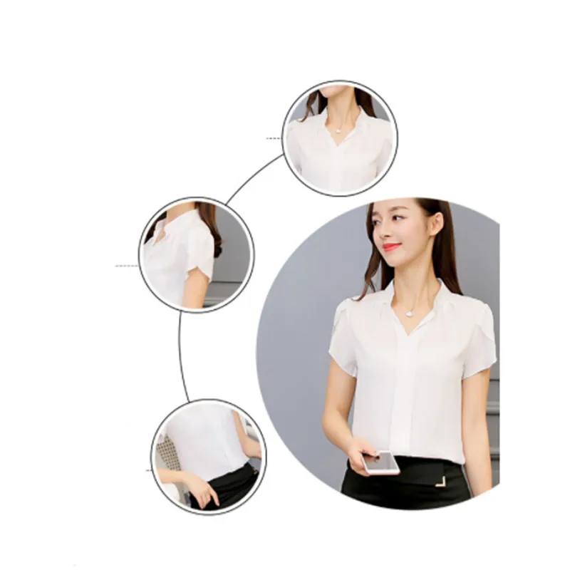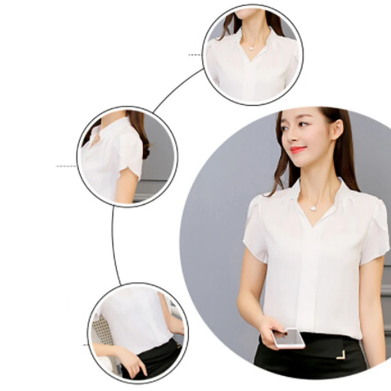 Женская шифоновая блузка, женские топы, элегантные женские деловые Блузы с коротким рукавом, новая шифоновая одежда, рубашка