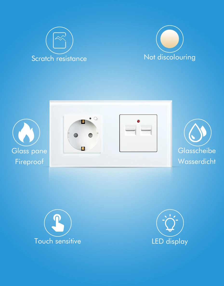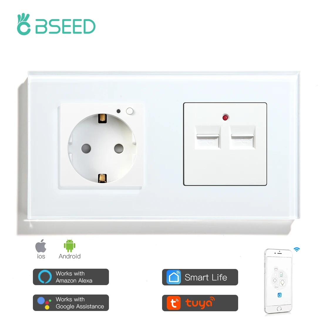 Умная розетка BSEED стандарта ЕС с обычным зарядным устройством USB, 100-240 в, белая, черная, прозрачная стеклянная панель, работает с "Smart Life"