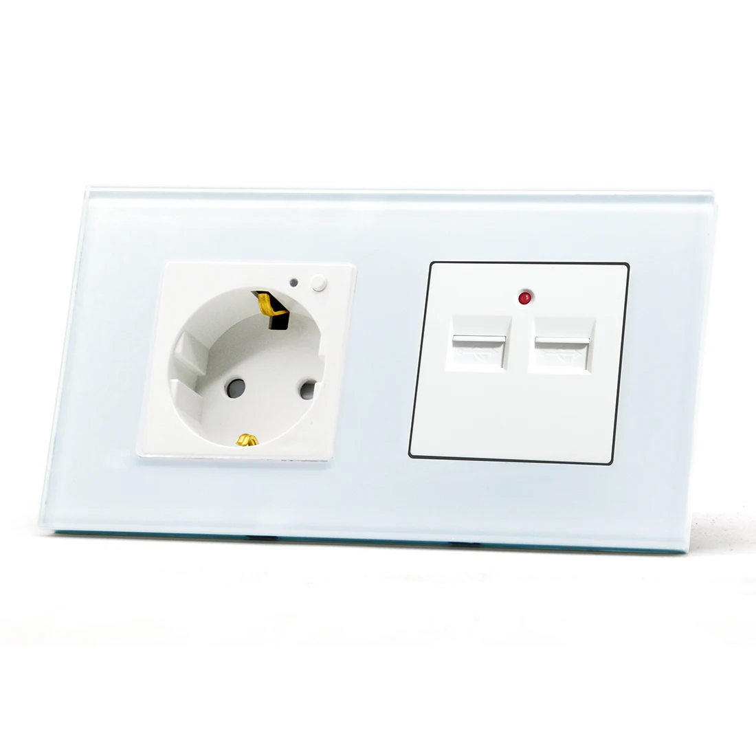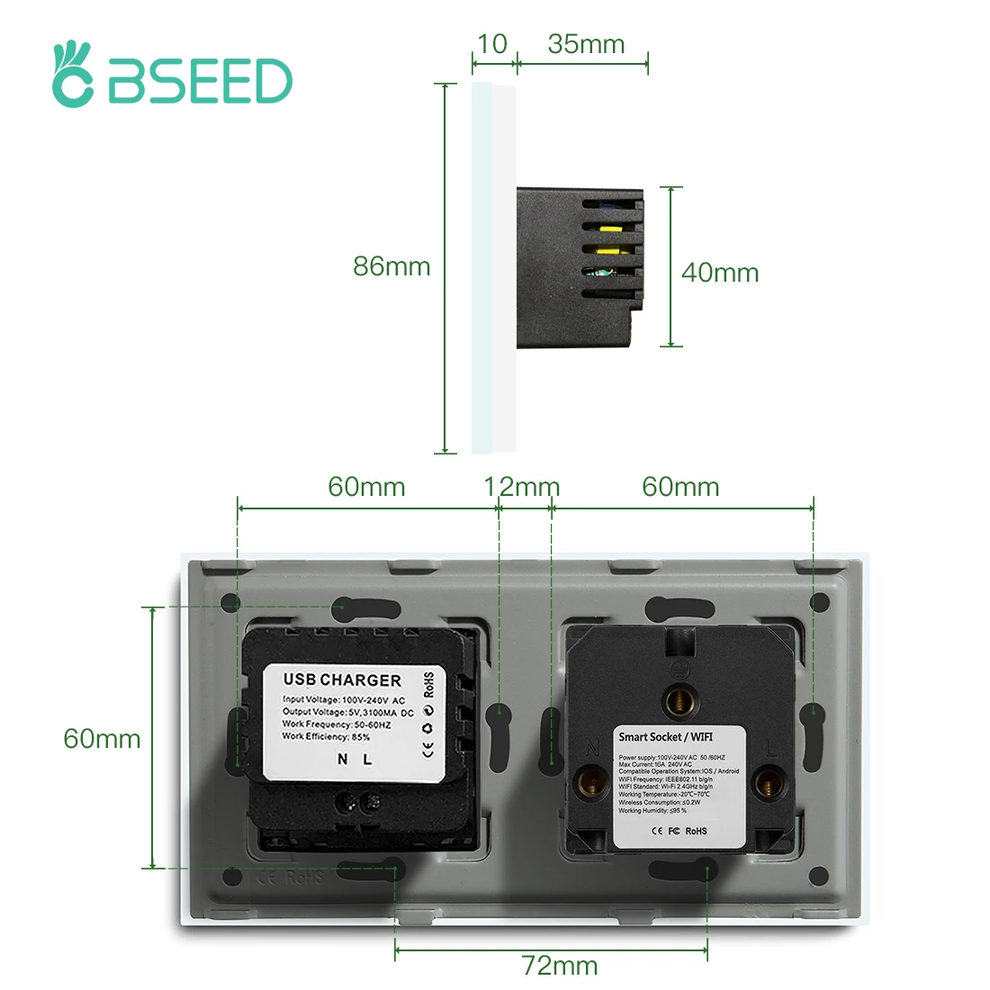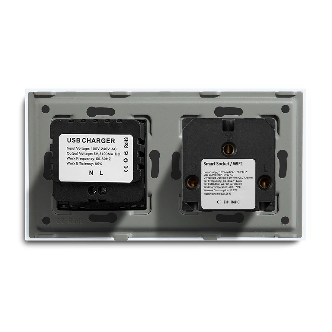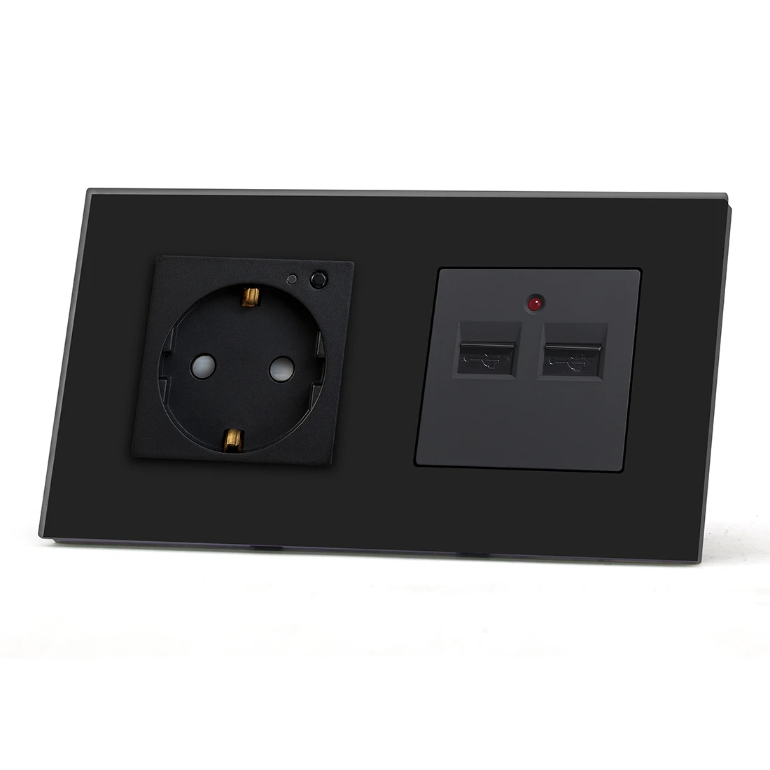 BSEED умная розетка ЕС Стандартный со стандартным USB Зарядное устройство 100V-240V белого и черного цвета с украшением в виде кристаллов стекло Панель работать с приложение Smart Life