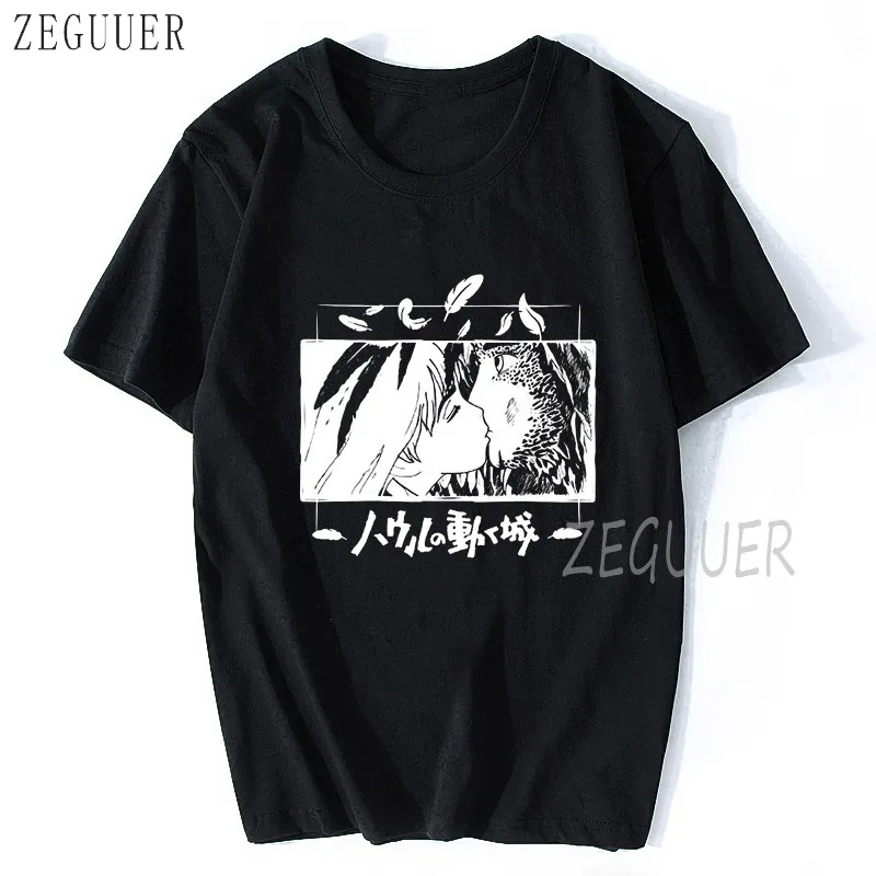 Футболка Howls с изображением движущегося замка, черная футболка для студии ghilii, Тоторо, Мононоке, хип-хоп, хипстерские повседневные футболки в стиле Харадзюку, топы, Аниме футболки