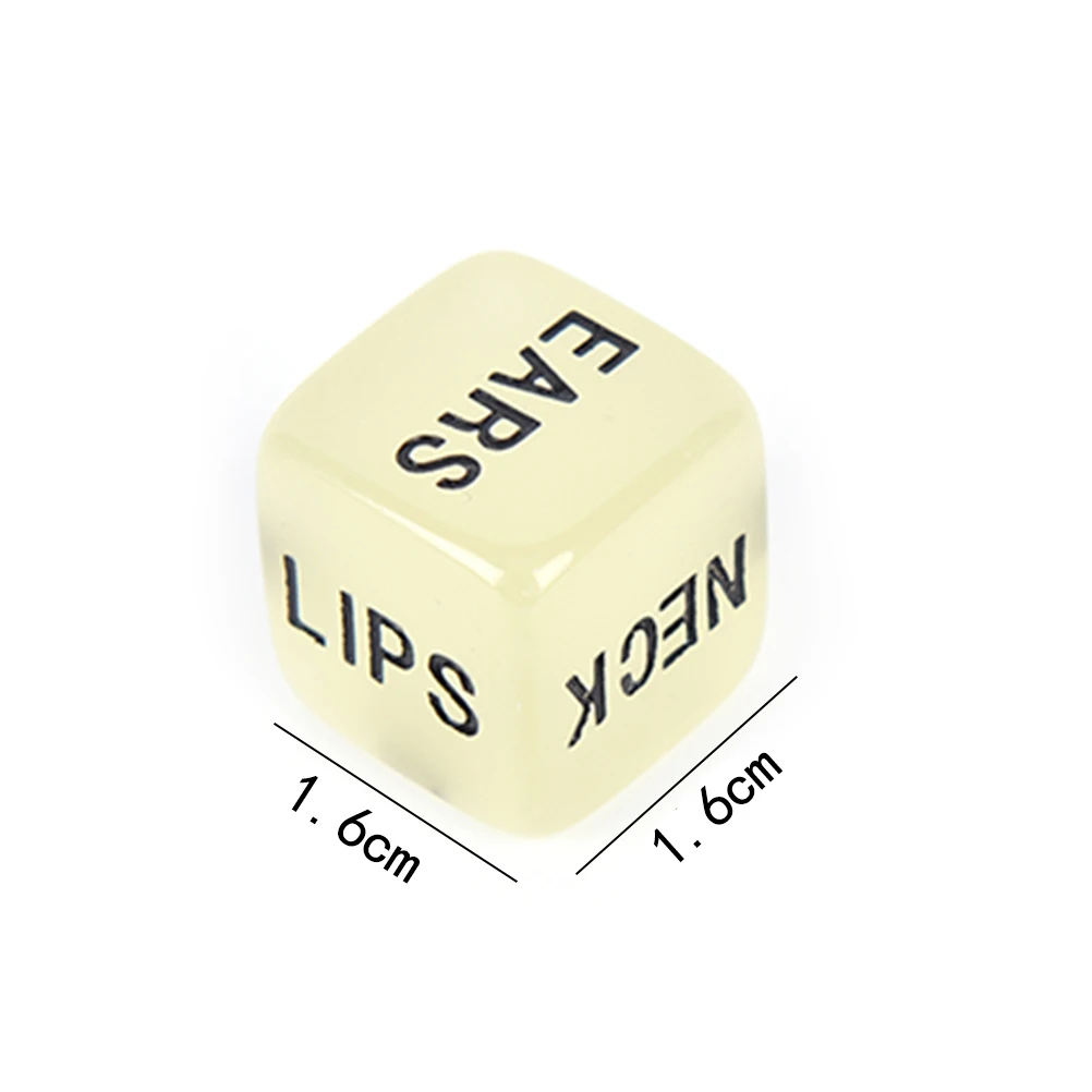 Отличный продукт для развлечений и recrEation.Идеально подходит для пар и влюбленных.Делает вашу любимую жизнь более смешной.Это забавно, интересно и привлекательно, светитсяМаленький и чрезвычайно портативный.Материал: смолаРазмеры: 1,6 × 1,6 × 1,6 смЦвет: как на картинкеПосылка включает в себя:2 шт./компл. забавные кубики