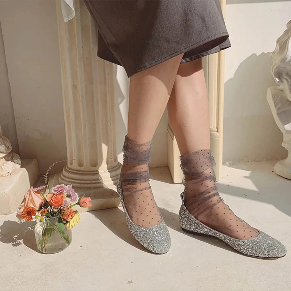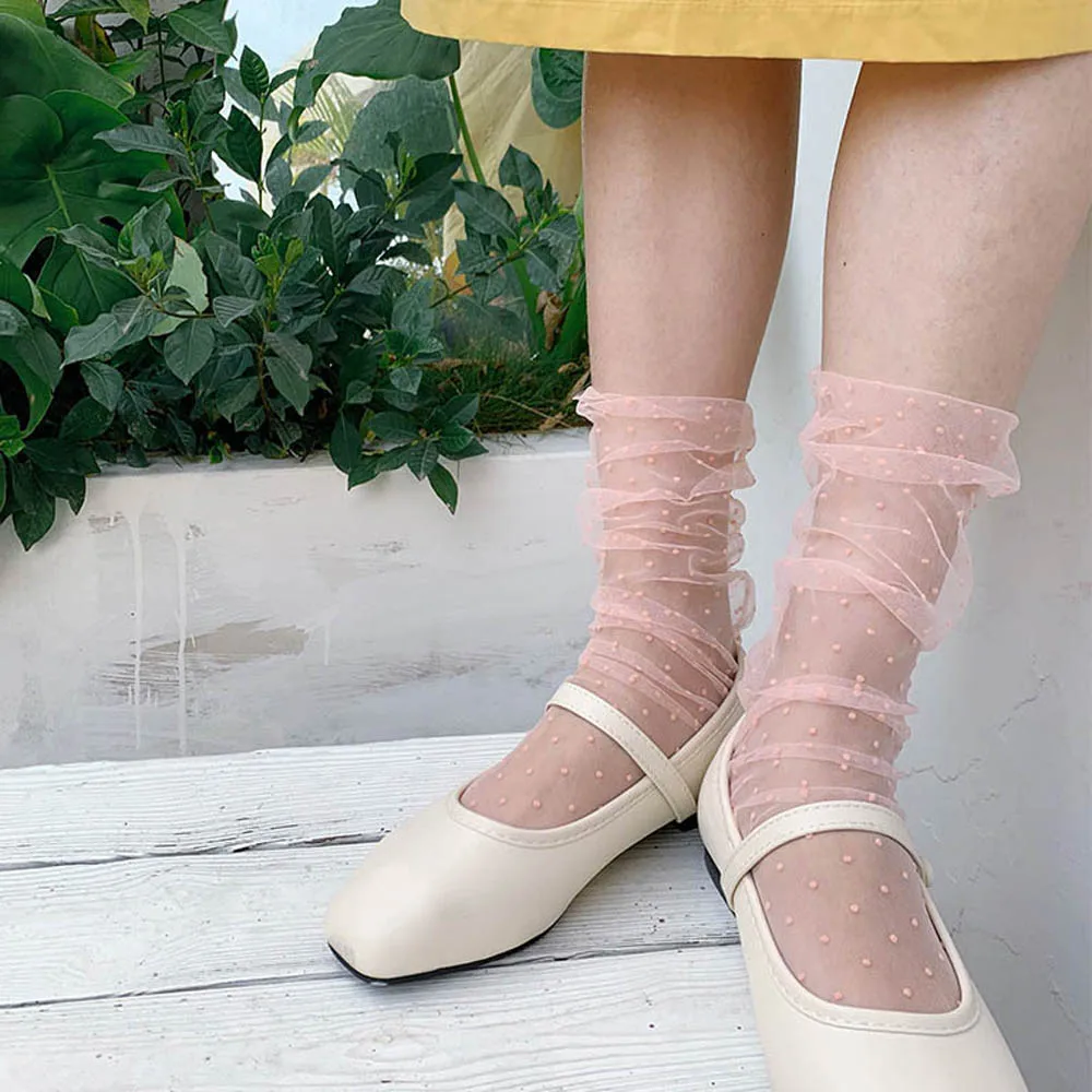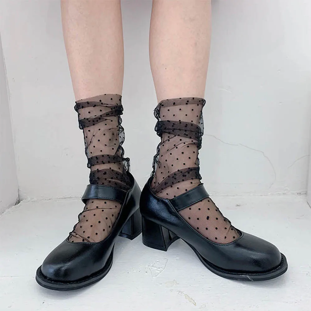 Носки женские в стиле Харадзюку, тонкие сетчатые прозрачные носки в горошек, 11 цветов, весна-лето
