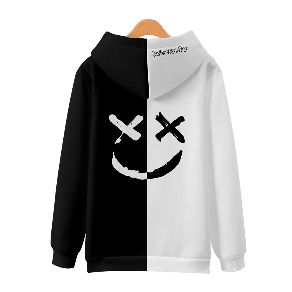 Толстовка с 3D изображением смайлика, черно-белая толстовка с изобр...