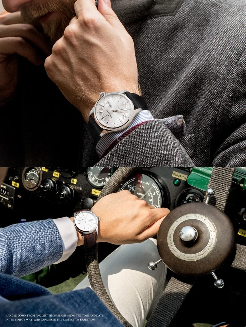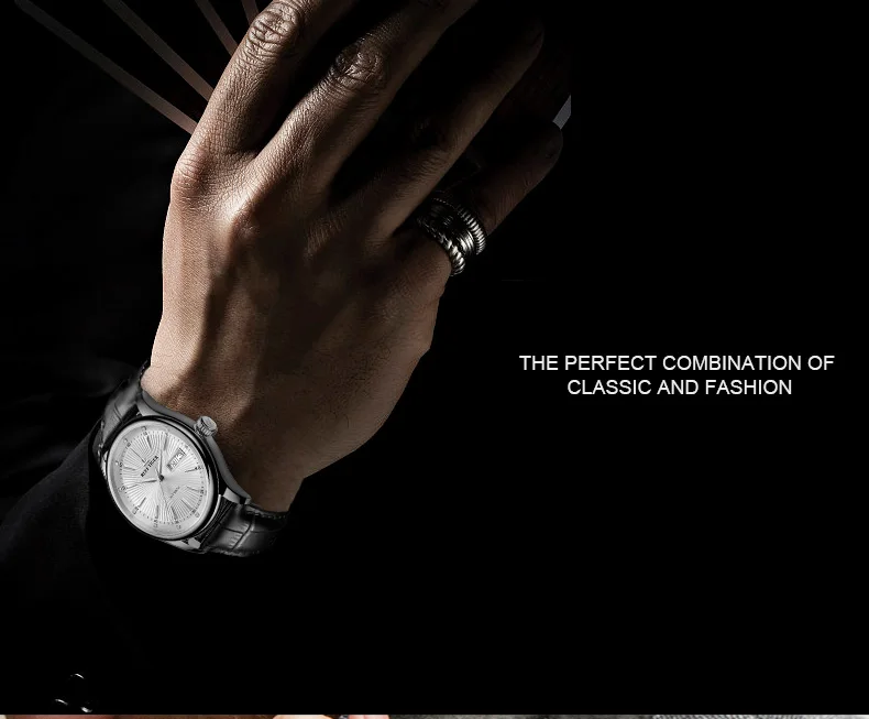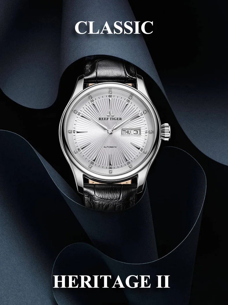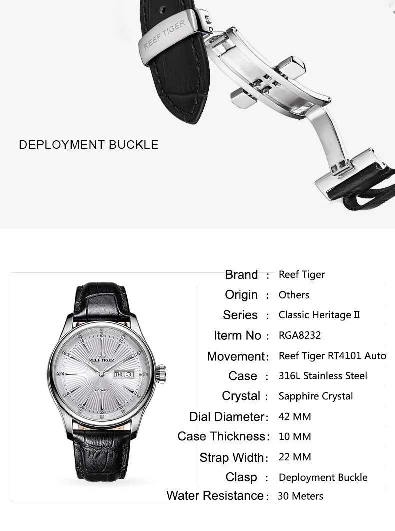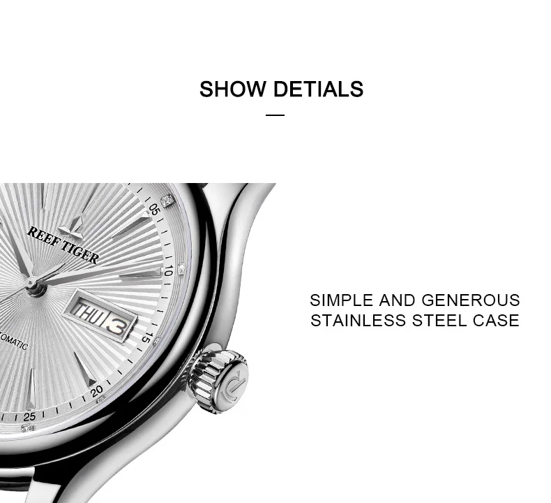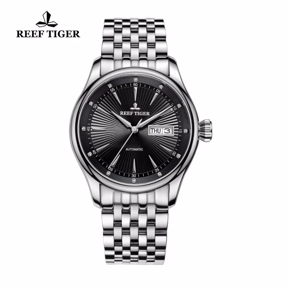 Риф ТигрRT платье в деловом стиле Для мужчин часы Дата черным циферблатом аналоговые автоматические часы Полный Нержавеющаясталь механические часы