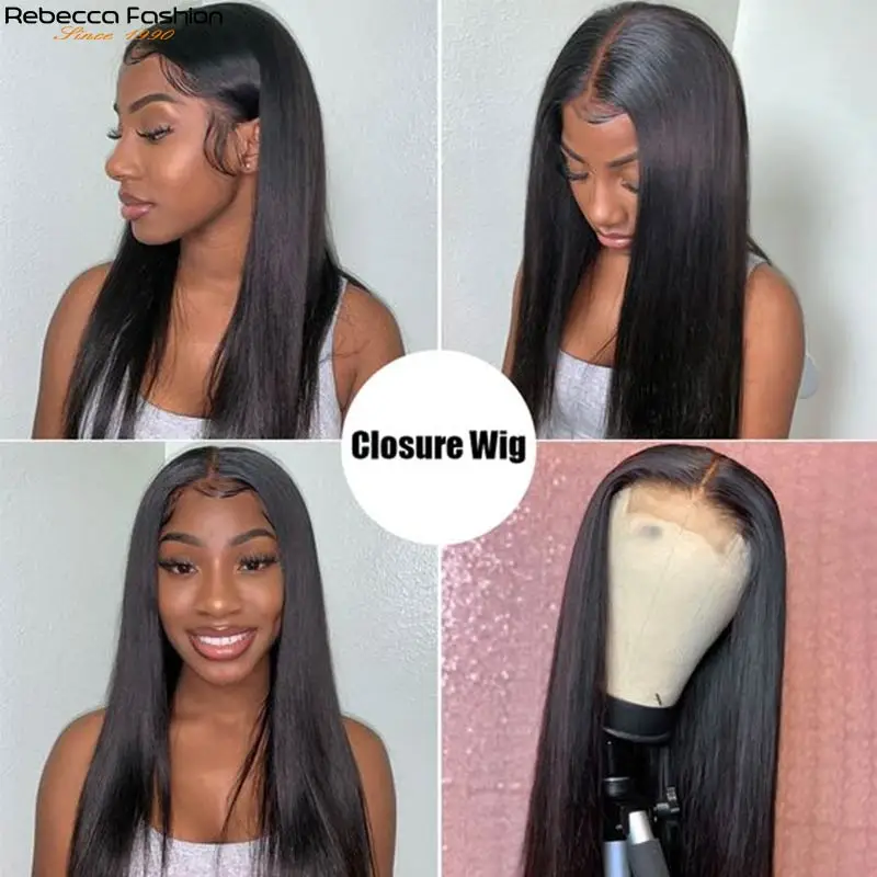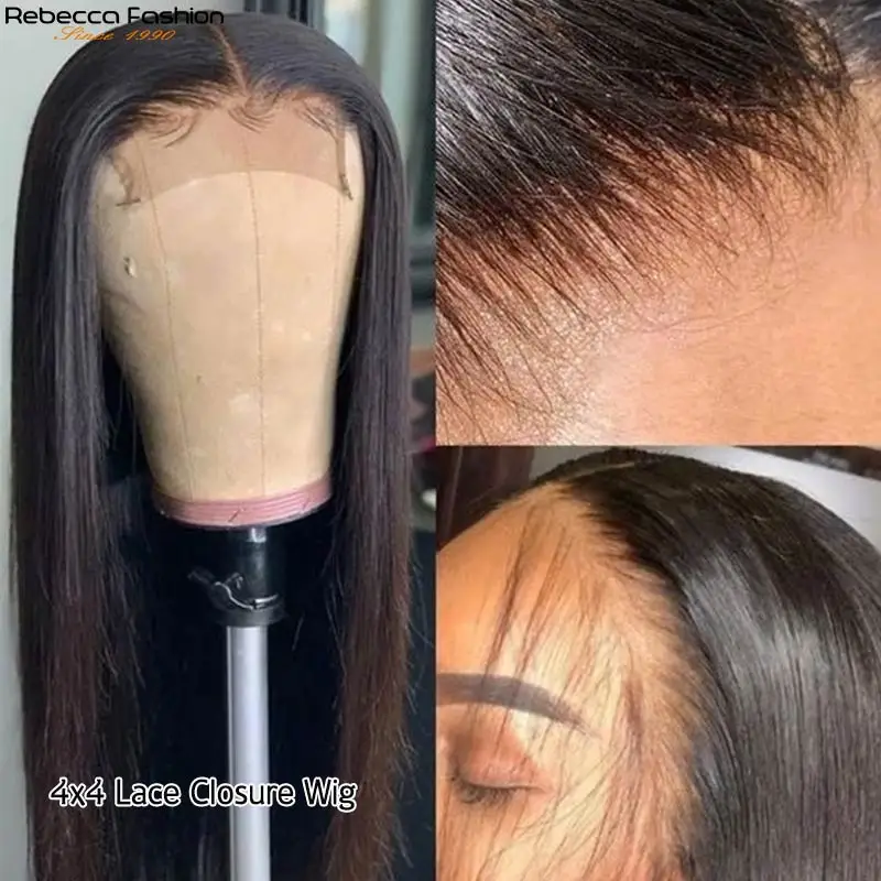 Парики из человеческих волос Rebecca на сетке, предварительно выщипанные, без клея, бразильские прямые, на сетке 4 х4, с детскими волосами, гладкий парик без повреждений