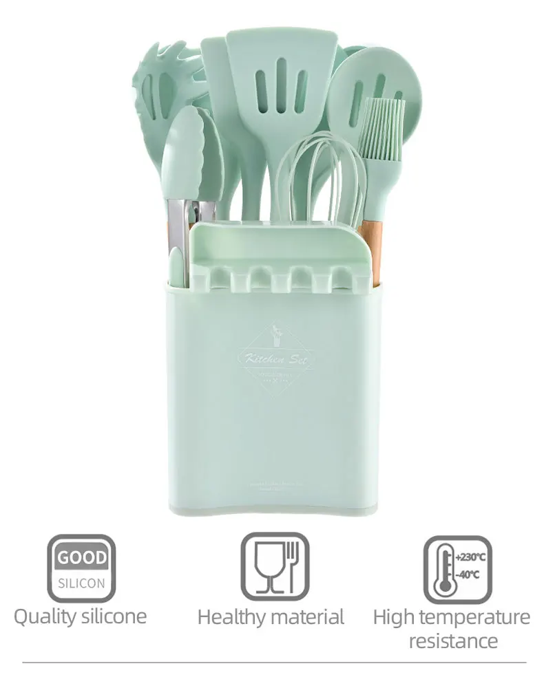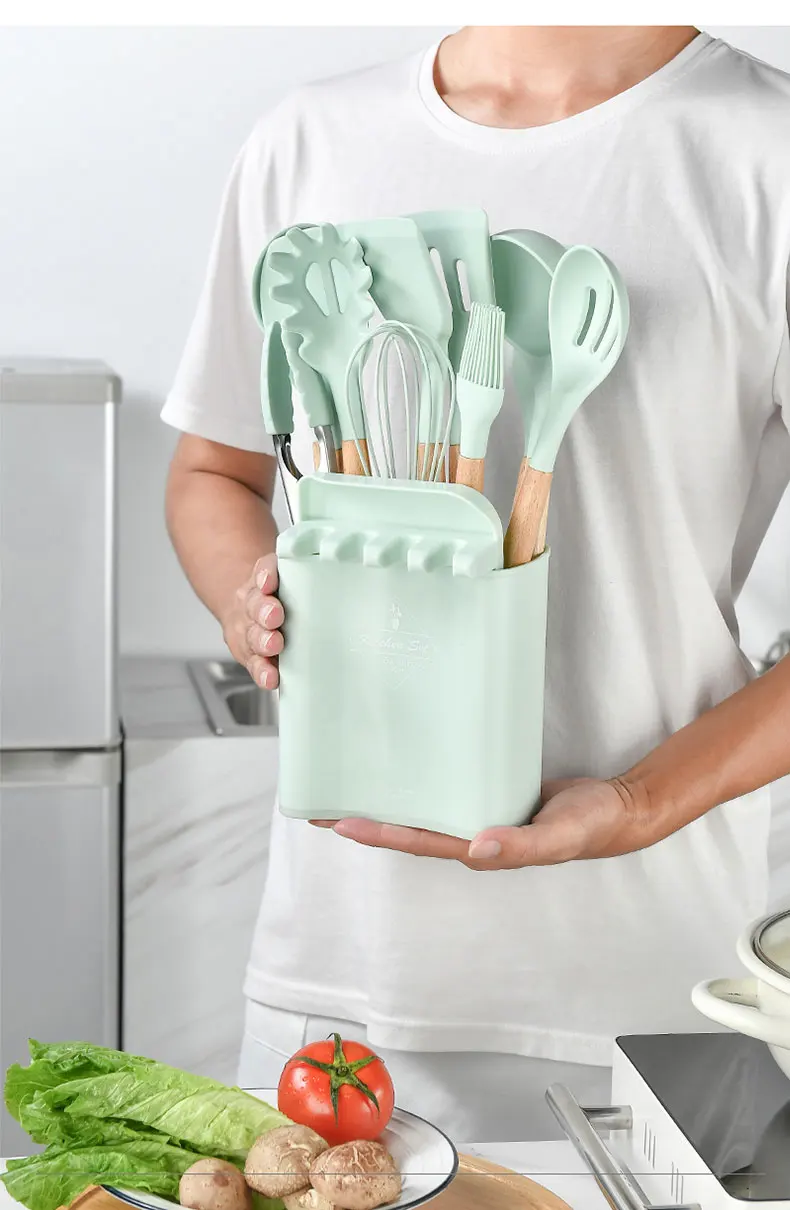Силиконовые кухонные принадлежности, кухонные принадлежности, набор кухонной посуды, кухонная ложка, приспособление, деревянная лопатка