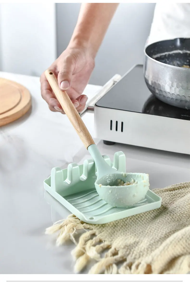 Может использоваться для размещения кухонной утвари, чтобы предотвратить остаточную еду от уничтожения чистоты столешницы