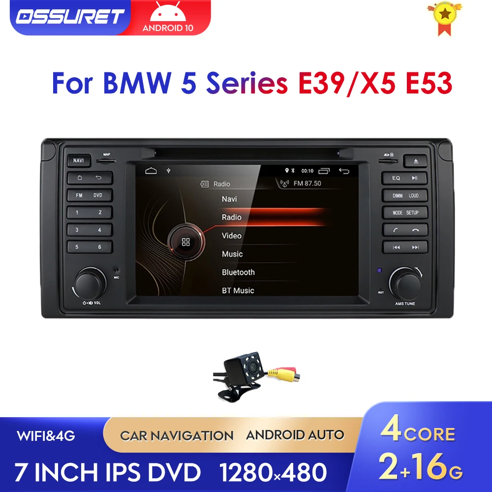 Автомагнитола 7 дюймов, Android 10, 1 DIN, DVD-плеер для BMW X5 E53...