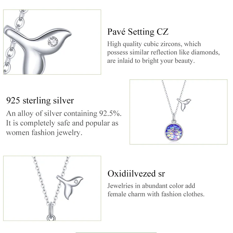 Ожерелье bamoer из серебра 100% пробы с синим хвостом для женщин и ...