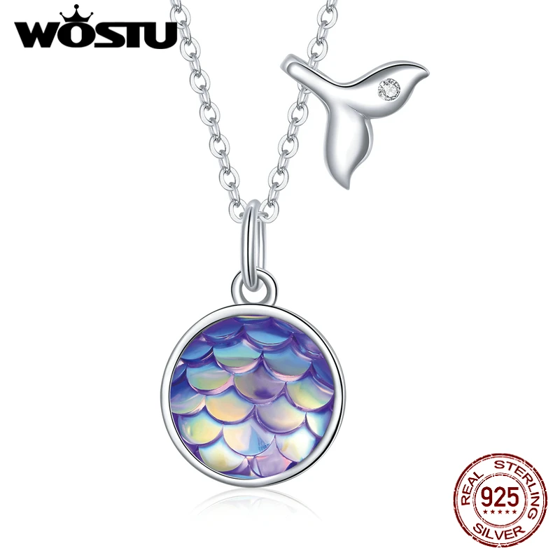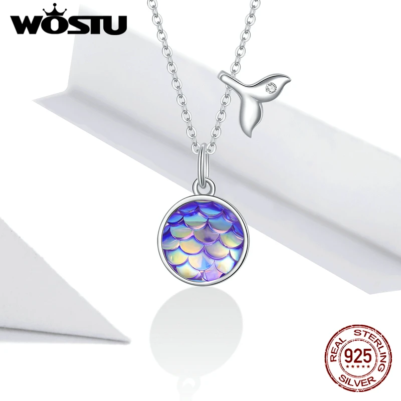 WOSTU ожерелье из стерлингового серебра 925 пробы с рыбьим хвостом для женщин полупрозрачный опал роскошный бренд изысканные ювелирные изделия режим FIN448