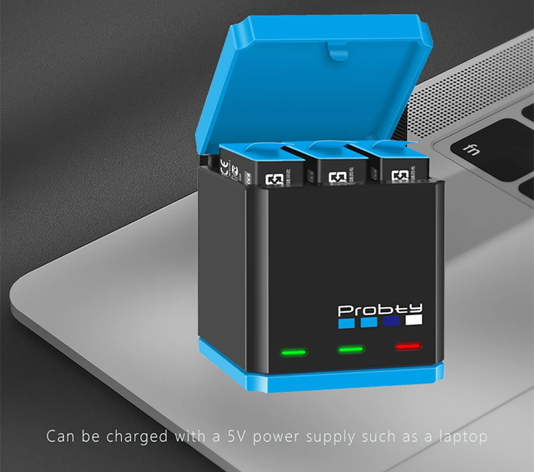 4. Многофункциональный дизайн: вы можете использовать его в качестве зарядного устройства для зарядки 3 аккумуляторов GoPro Hero9 одновременно и в качестве ящика для хранения 3 батарей.