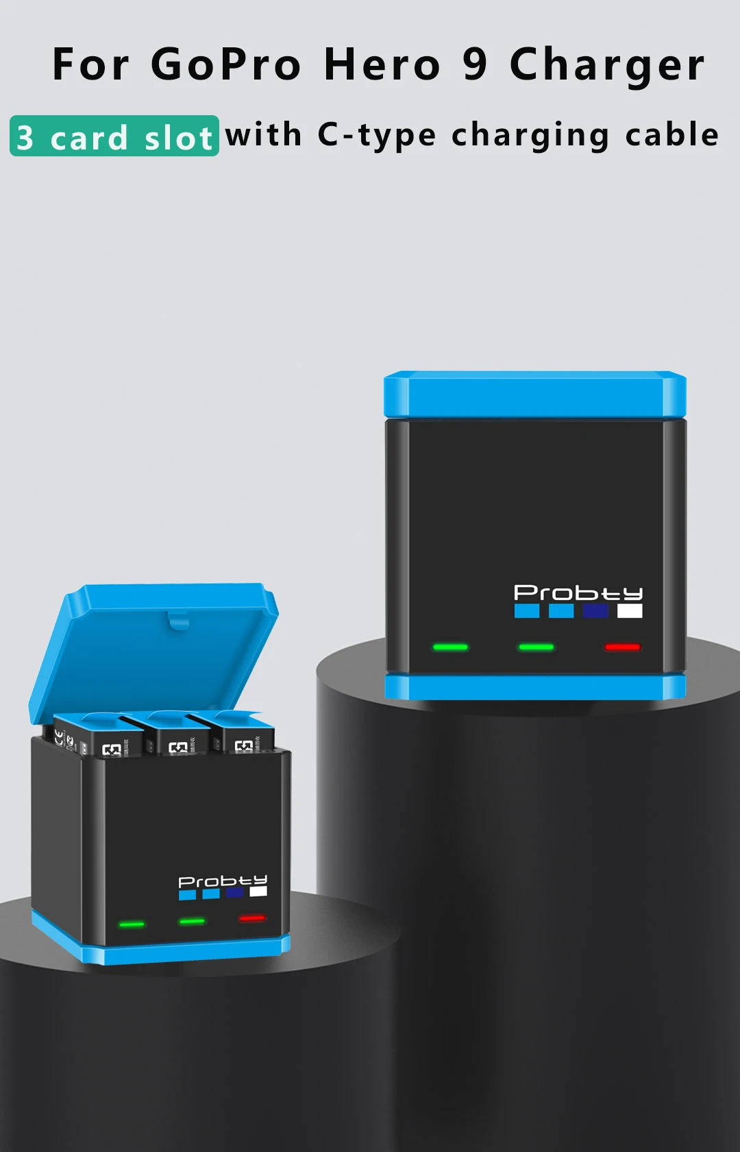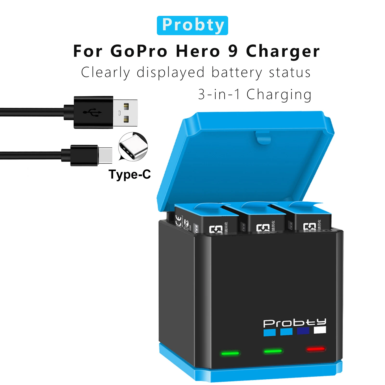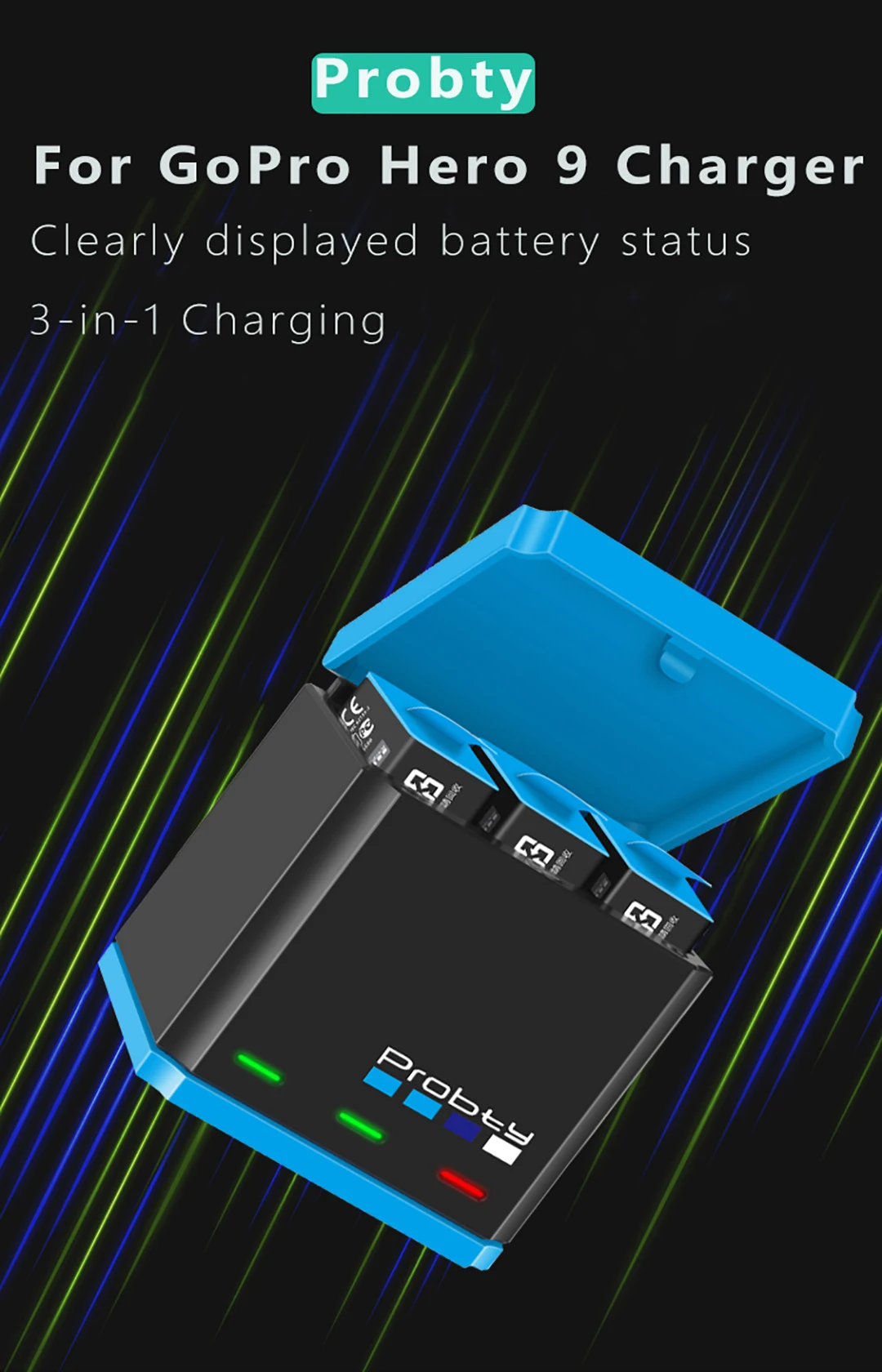 1. Идеально подходит для Gopro Hero 9: устройство для зарядки аккумулятора не выскакивает, специально разработано для Gopro Hero 9 зарядки камеры, хранения и зарядки встроенный умный менеджер батареи, может заряжать три батарейки в одно и то же время, 3A высокий ток быстрая зарядка, 2,5 H полной зарядки, Остановитесь при полной зарядке, держите камеру дольше.