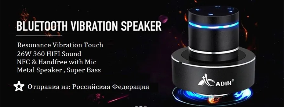 Оригинальный Adin 26 Вт металлический Вибрационный динамик Bluetooth Сенсорный Стерео Бас беспроводной сабвуфер микрофон портативные музыкальные колонки динамик s для телефона