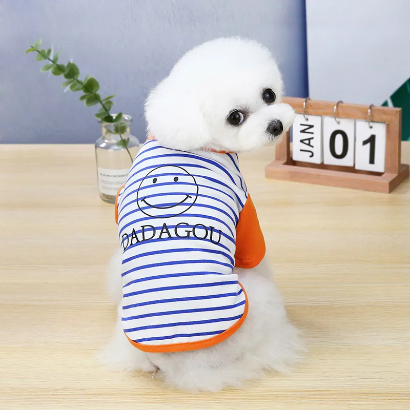 S-XXL Весна и лето Собака Футболка из мягкой дышащей ткани щенка рубашка со смайликом в полоску маленьких собак, одежда для собак, своего померанского шпица Ropa Para пер