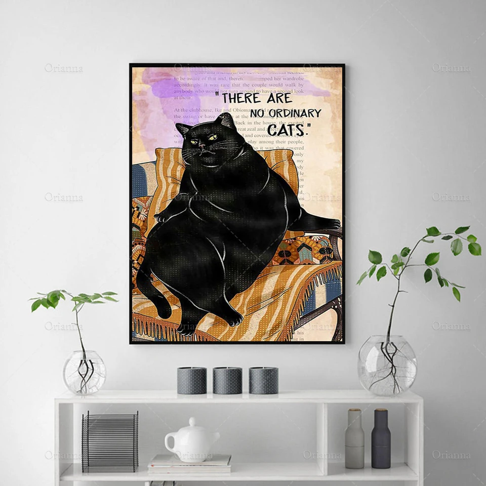 Нет обычных плакат с кошкой, плакат с черным котом, плакат с толстым котом, Настенный декор с котом, настенное искусство для печати, Современное украшение для дома