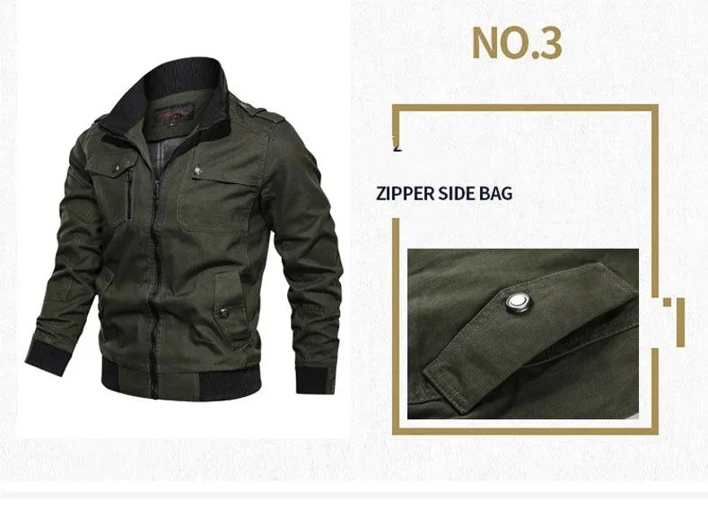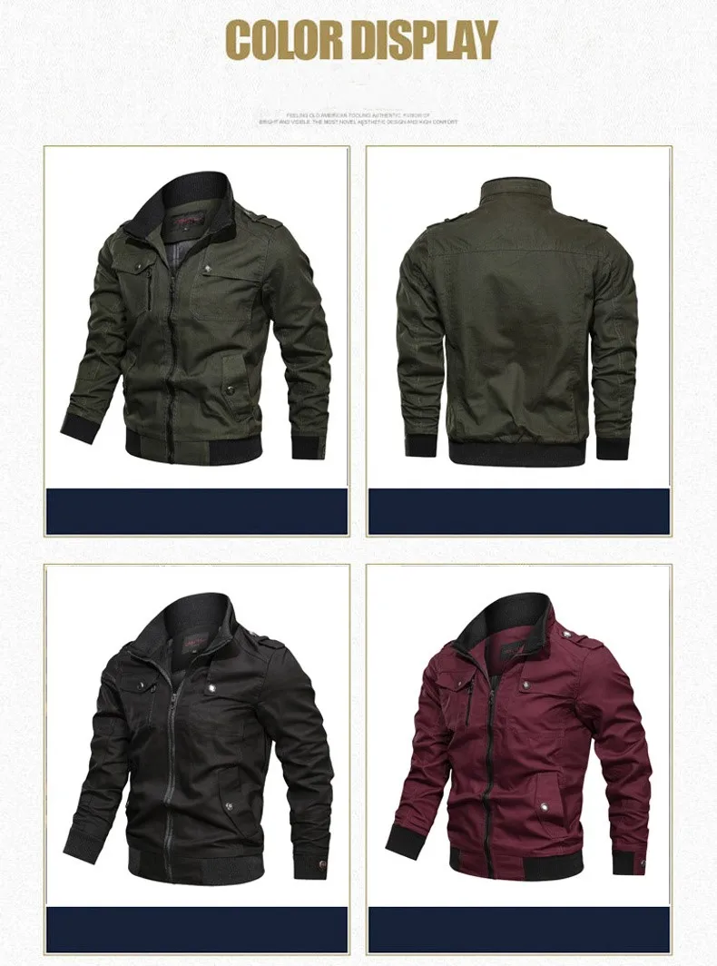 Куртка-бомбер мужская, хлопковая, в стиле милитари, на осень и весн...