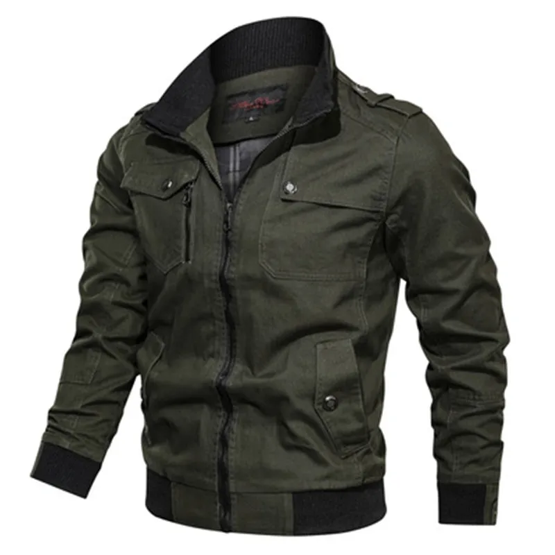 Мужская куртка в стиле милитари, повседневная однотонная куртка на ...