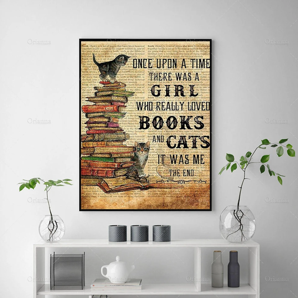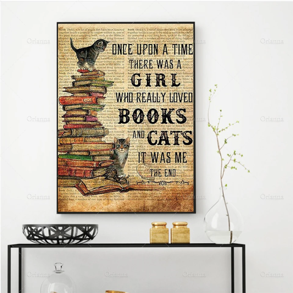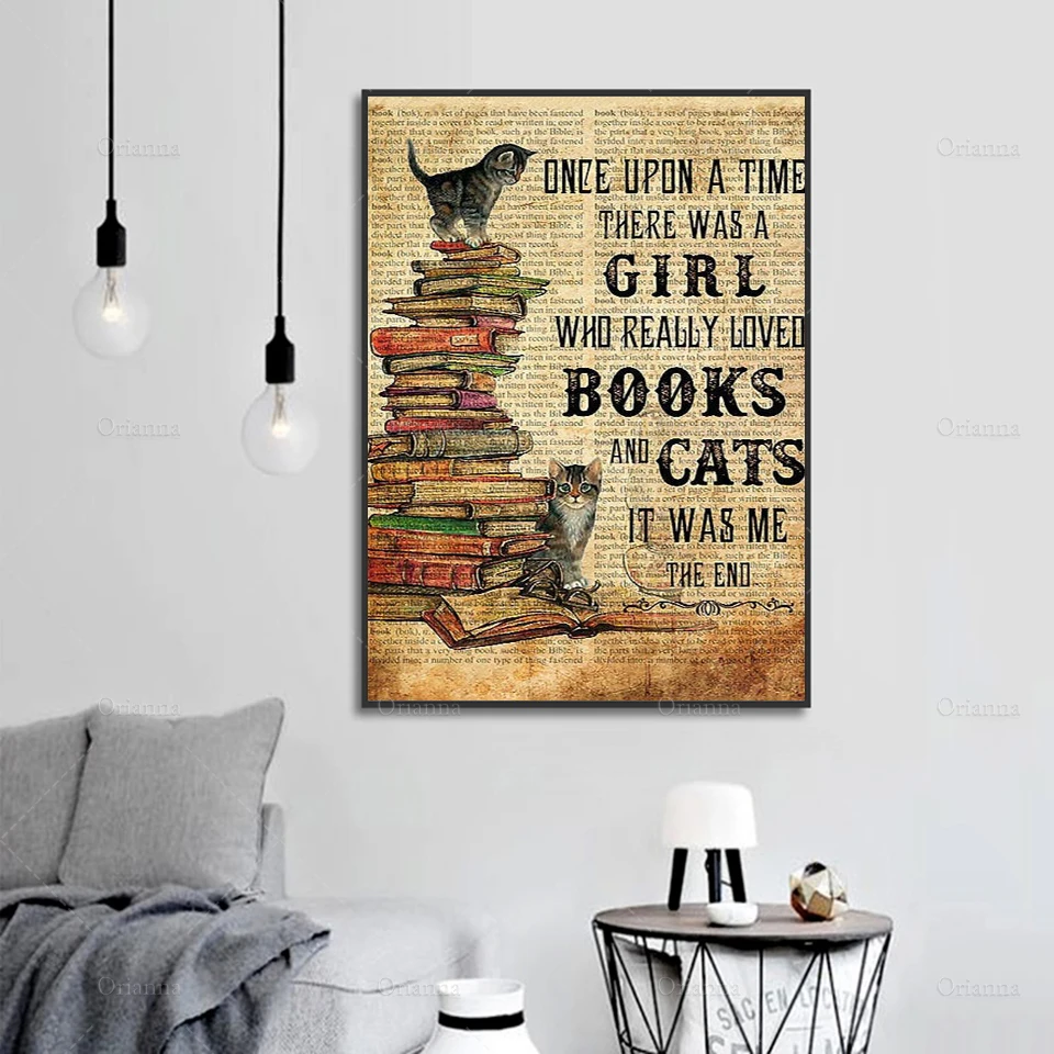 Once Upon A Time было девочке, которая действительно в восторге от книги и плакат с кошкой на холсте кошка Wall Art Cat Lover подарок, украшение для дома