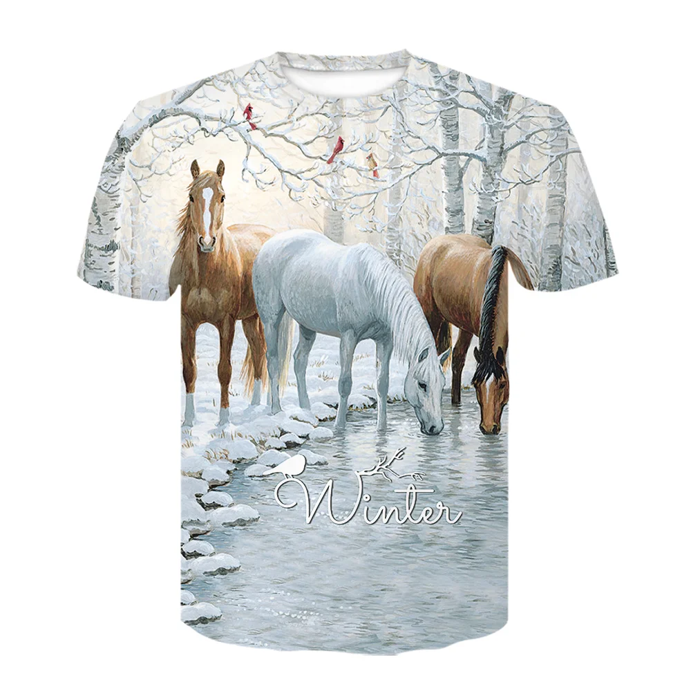 Летняя Новинка, 3D футболка с рисунком одежда O-Neck Horse, модные ...