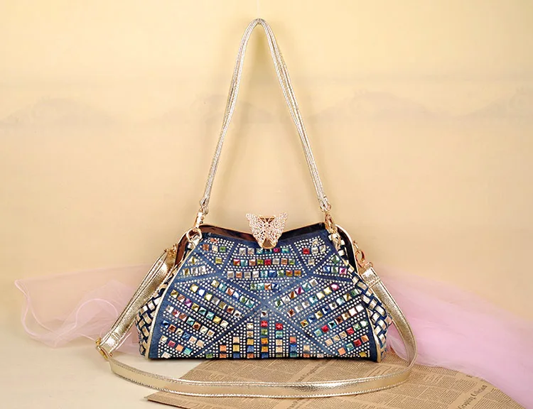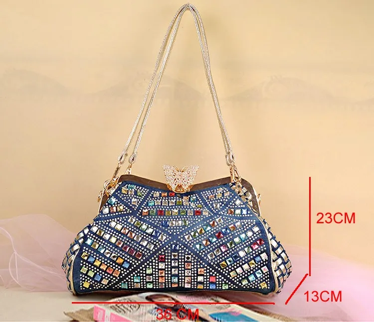 IPinee дамские сумочки женские модные сумки брендовые дизайнерские женские Наплечные сумки джинсовые Стразы Декоративные