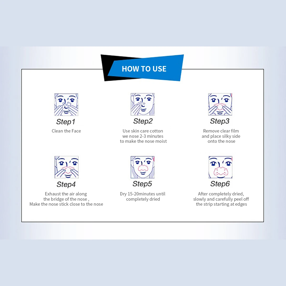 ✍Очистите лицо;✍Для увлажнения носа Используйте хлопковый мокрой нос 2-3 минуты;✍Снимите прозрачную пленку и поместите шелковистую сторону на нос;✍Сушить 15 ~ 20 минут до полного высыхания;✍После полного высыхания медленно и аккуратно снимите полоску, начиная с краев. ????Для удаления угрей????Очиститель угрей????Тип: стикер с Черной головкой????Эффективность: отбеливание, увлажнение, отшелушивание, сужение пор, удаление черных точек????Цвет: черныйПосылка включает в себя:✌Наклейки на нос 50x Примечание:✿Due на различных характеристик мониторов и светильник эффект, фактический цвет элемента может быть s светильник ly отличается от цвета, представленного на снимках. Спасибо!✿Возможны отклонения в 1-3 мм вследствие измерений вручную.