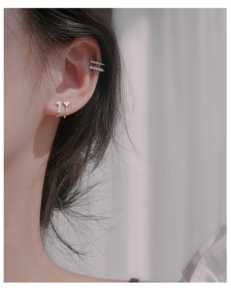 CIAXY 925 стерлингового серебра двойной Асимметричный ухо клип для женщин не проколотых ушей кости клип модные Фея серьги с цирконием, ювелирное изделие