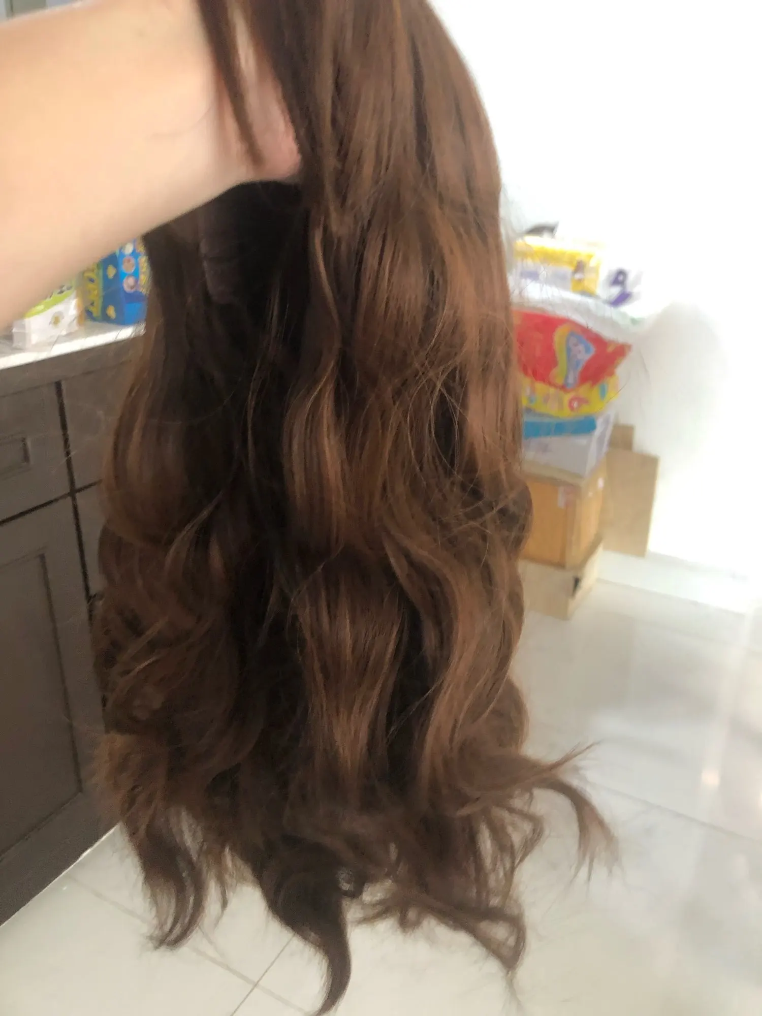 Парик для косплея из синтетических волос с коричневыми волнистыми в...