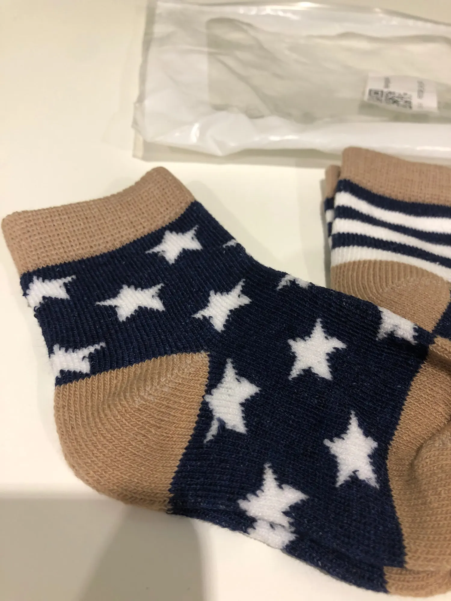 носочки мне очень понравились. для моих детей подошли на возраст 4 месяца и три года идеально))). точно такие же как на фото продавца, только у синих однотонных носочек не белый, а светло-коричневый, но это и лучше, т.к. сочетается лучше... с продавцом не общалась. заказ пришел очень быстро, но доставка зависела от количества купленных товаров...