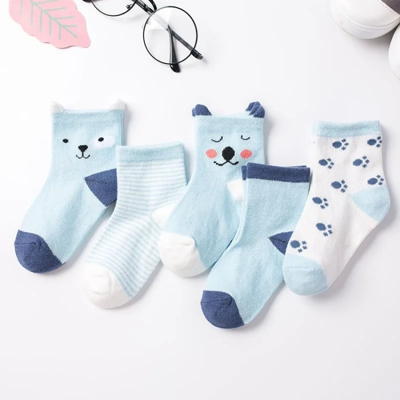 5 партлот 2022, детские носки, детские летние вязаные носки из хлопка в полоску с мультяшными животными, Одежда для новорожденных