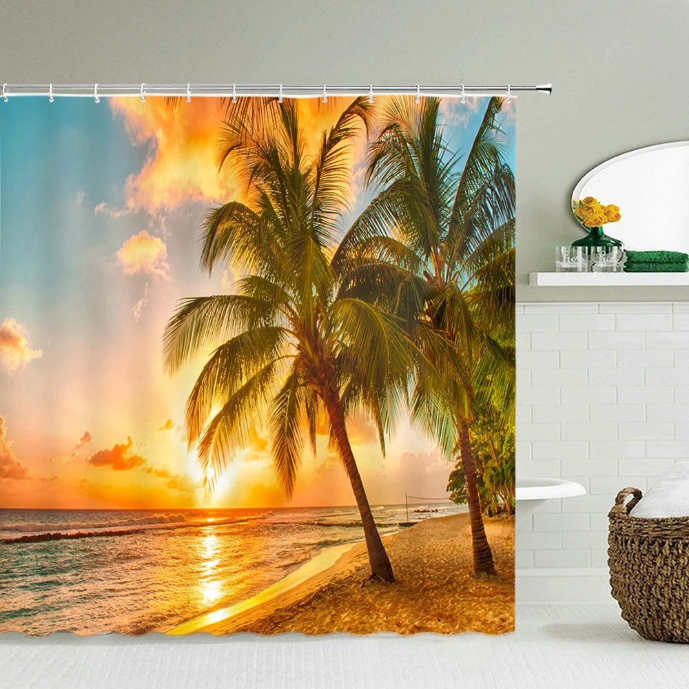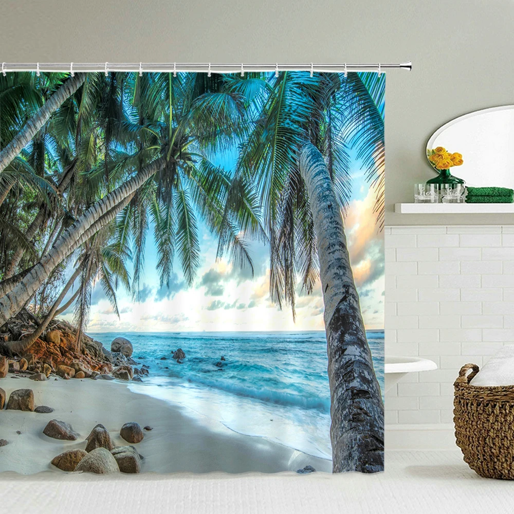 Водонепроницаемая шторка для душа с изображением морских пальм