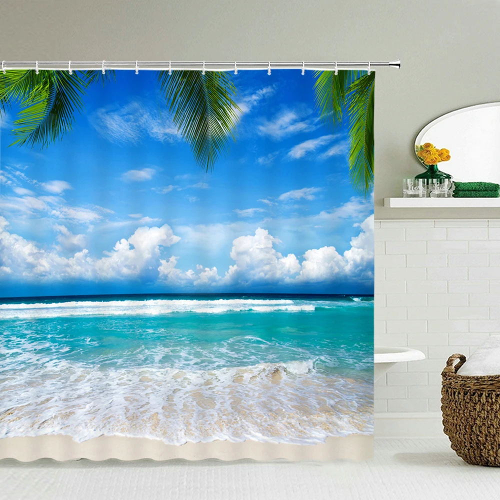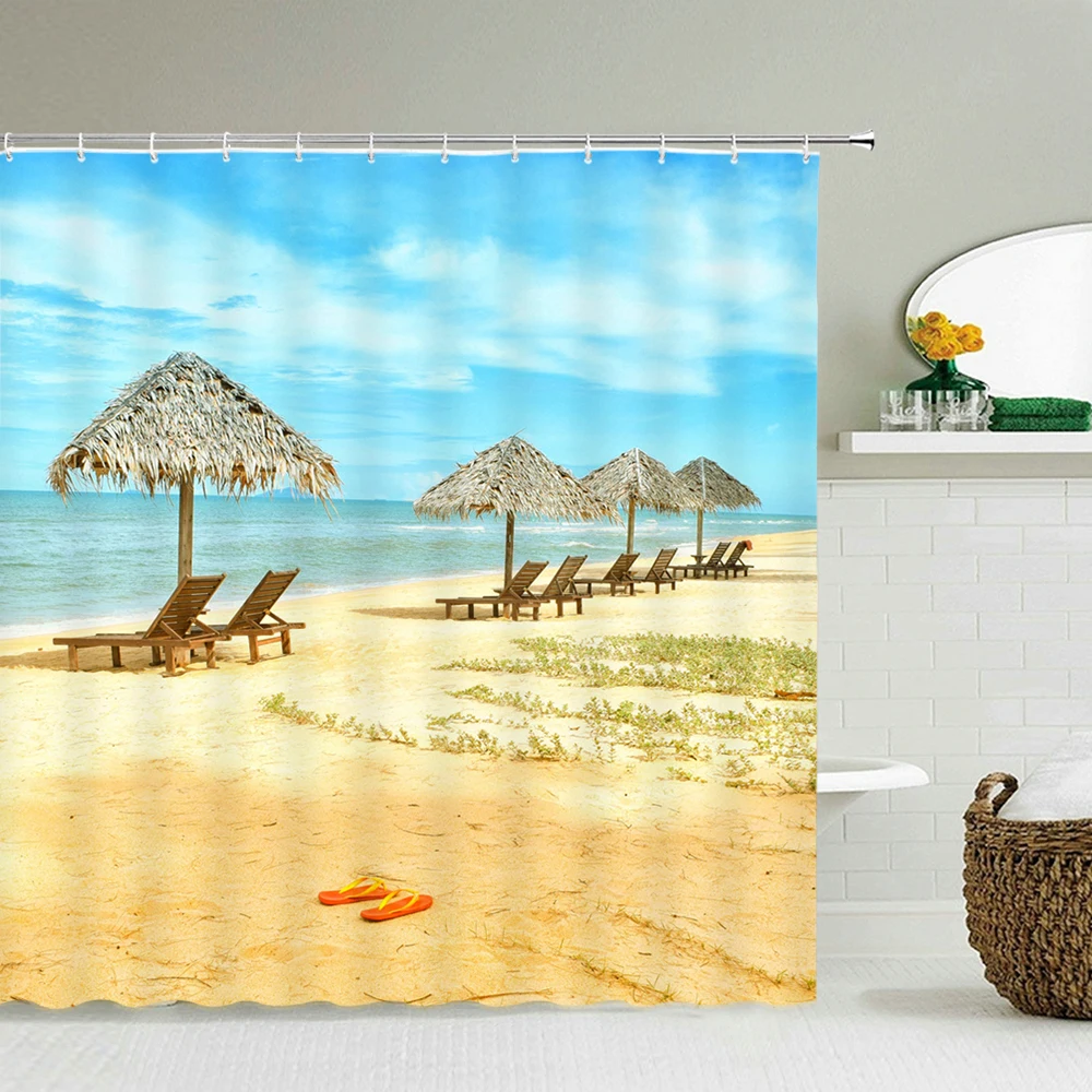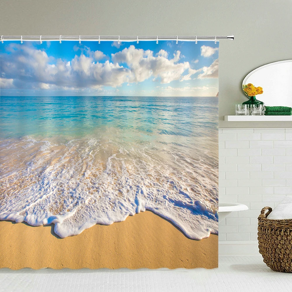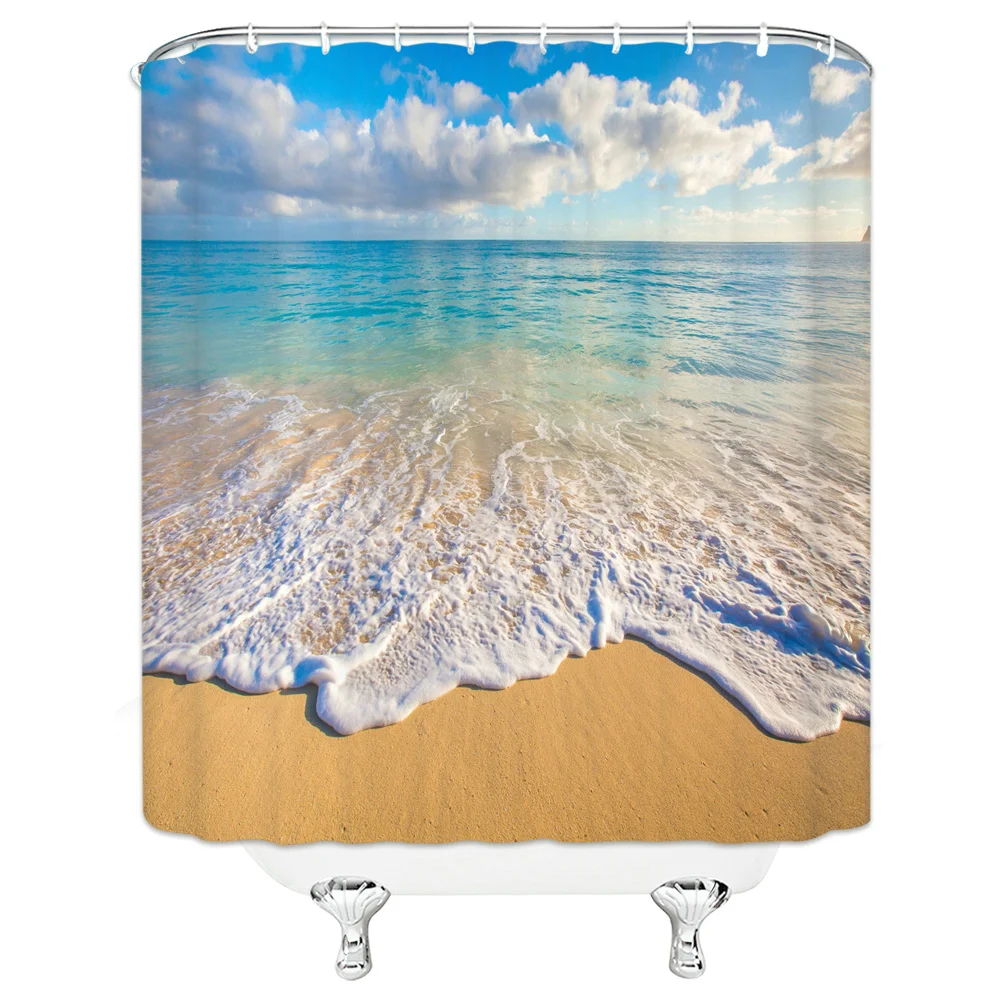 Морская пляжная занавеска для душа с ландшафтом, водонепроницаемый ...