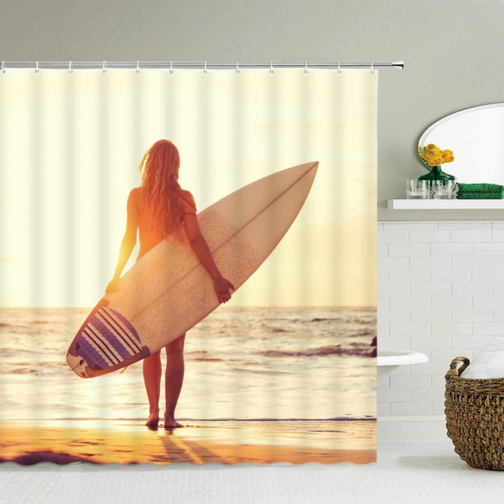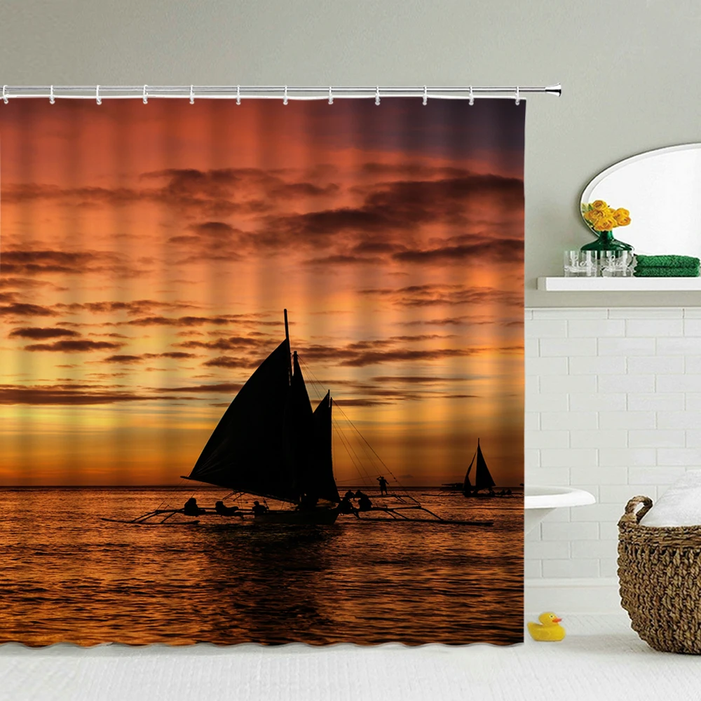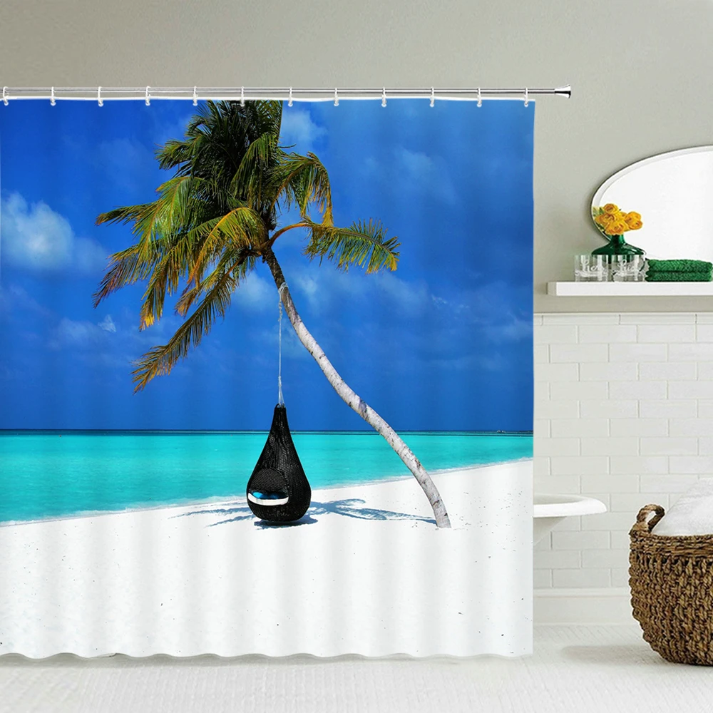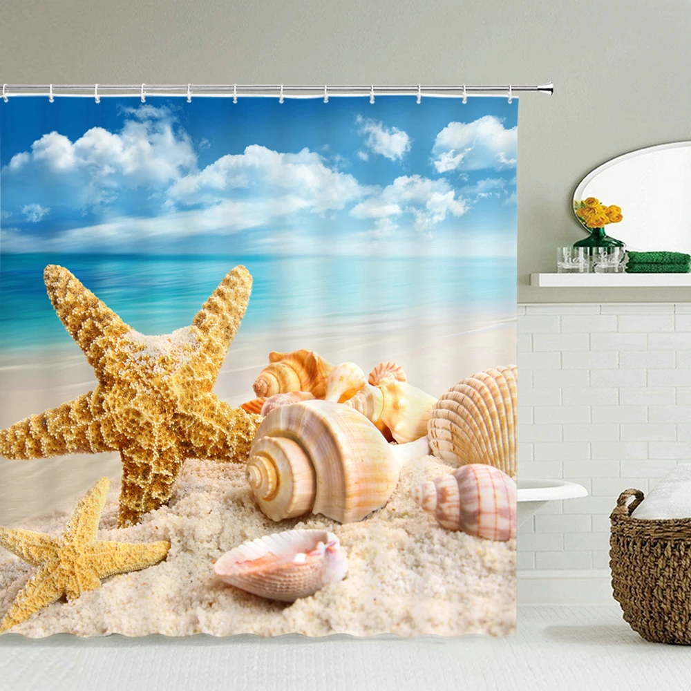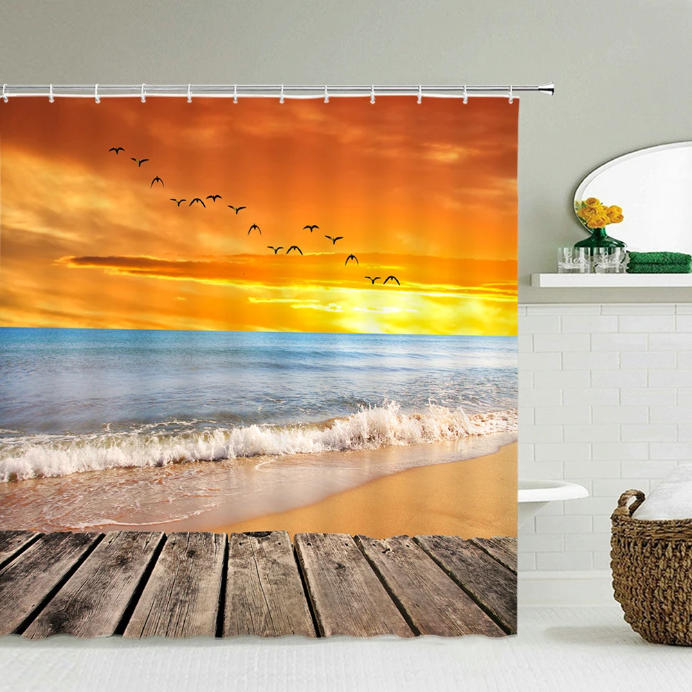 Морская пляжная занавеска для душа с ландшафтом, водонепроницаемый ...