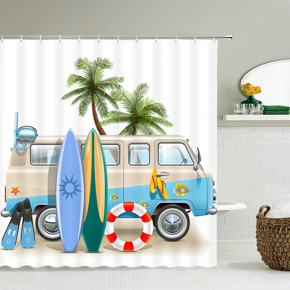 Пляжная Классическая Автомобильная занавеска для душа в стиле ретро...