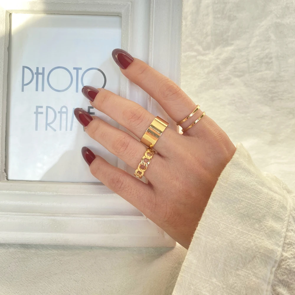 EN минимализм золотого цвета круглые геометрические кольца на палец набор для женщин 2021 классическое круглое Открытое кольцо Совместное кольцо женское ювелирное изделие
