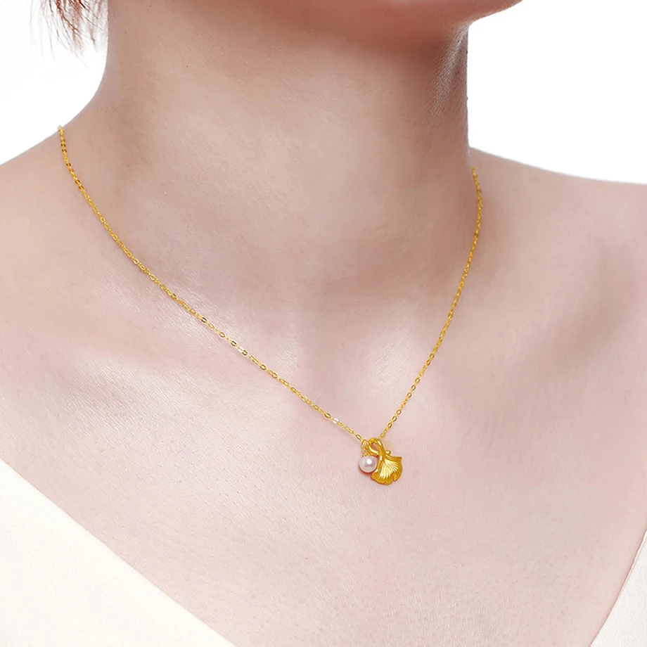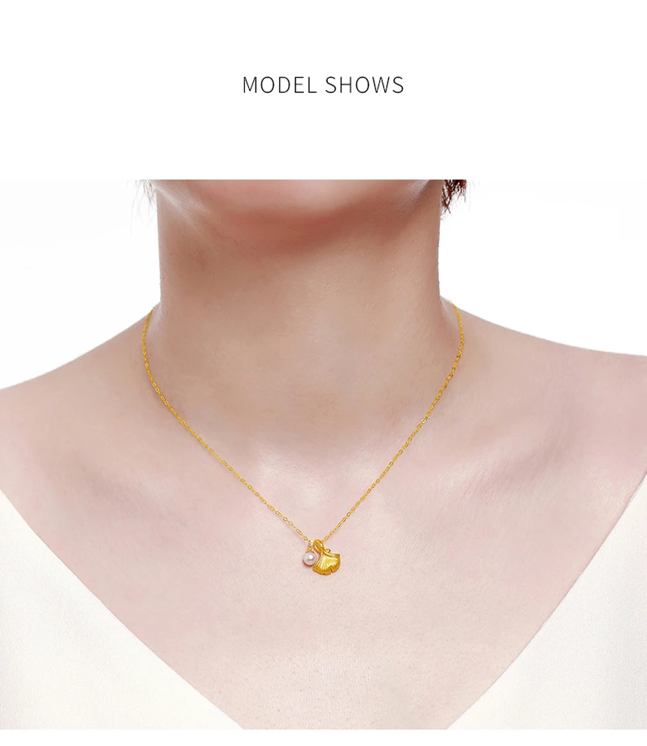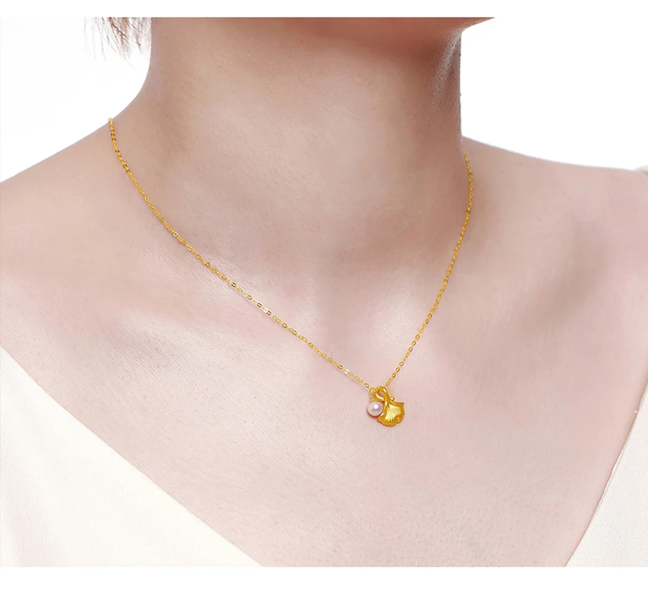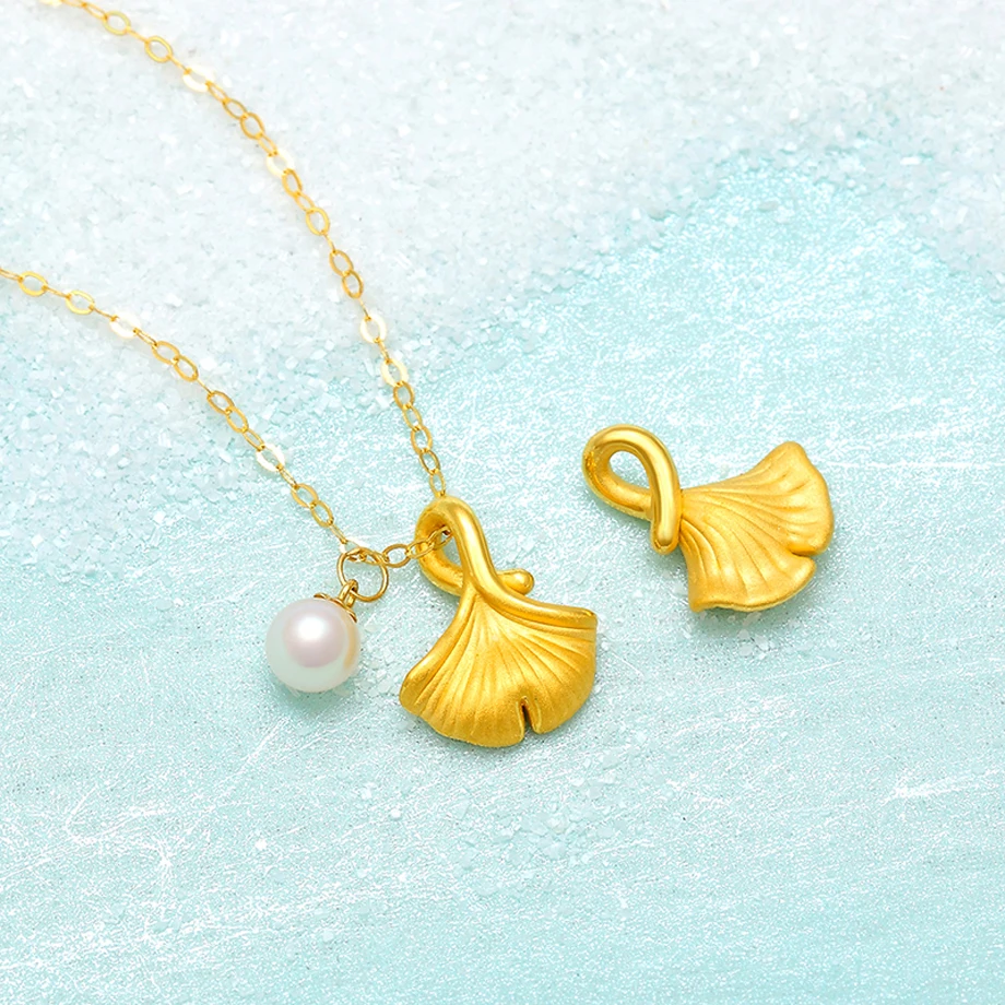 NYMPH Настоящее 24K 999 Золото гинкго билоба кулон ожерелье и натуральный жемчуг чистый 18K AU750 цепь хорошее ювелирное изделие подарок для женщин D562
