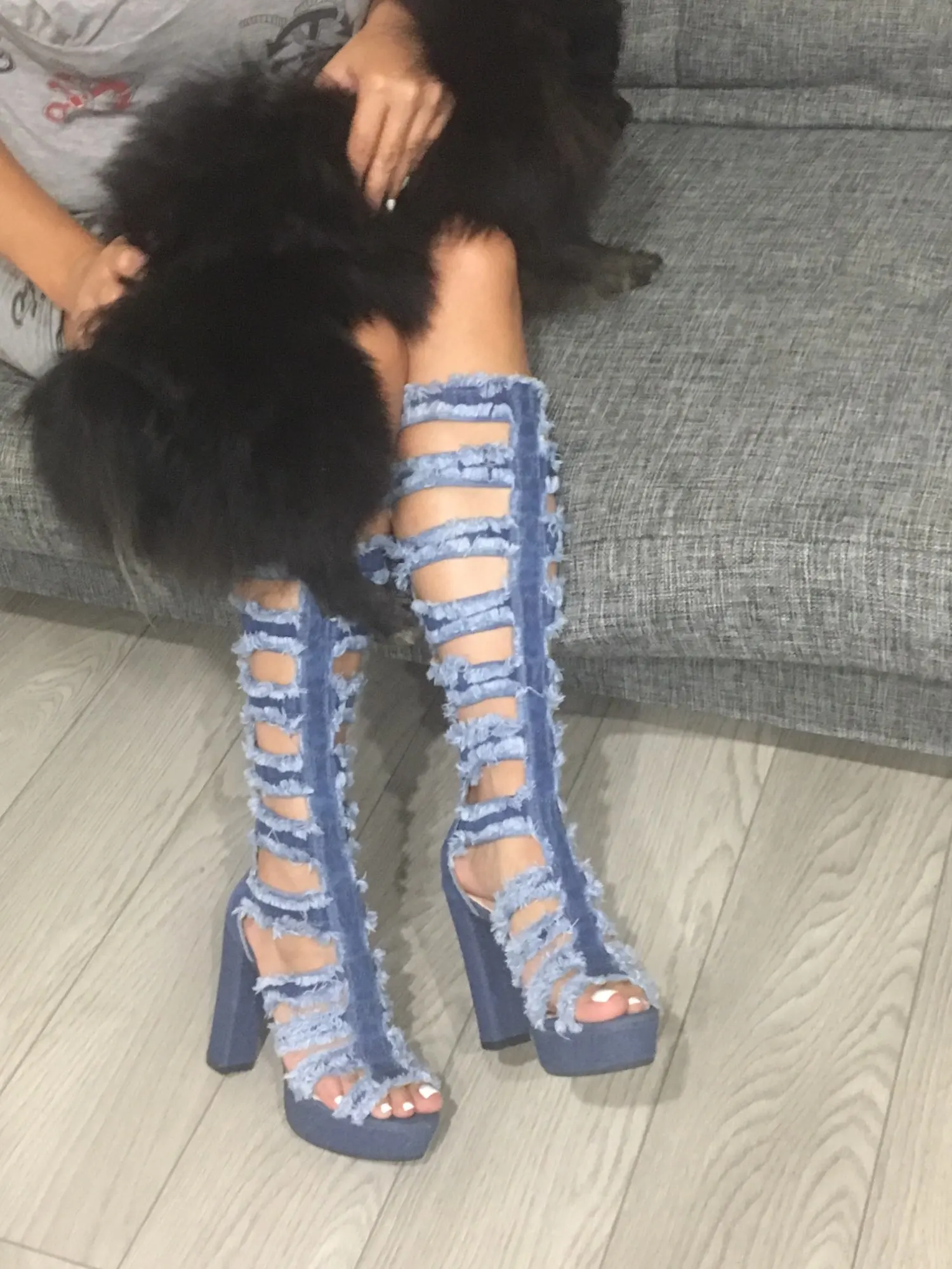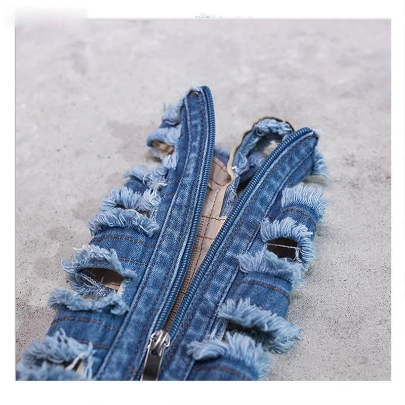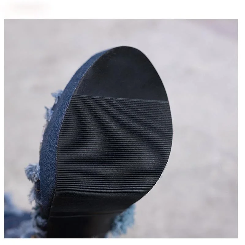 Женские джинсовые сапоги выше колена, длинные узкие сапоги на массивном каблуке, на платформе и высоком каблуке, дизайнерская обувь, лето 2021