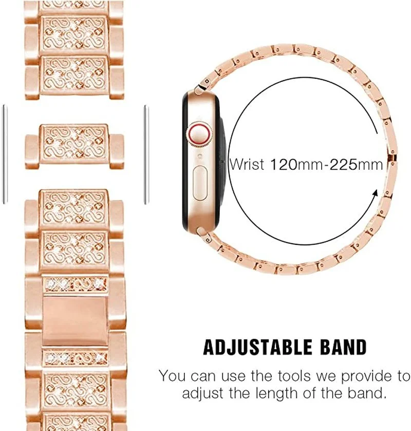 Браслет для Apple Watch Band 42 мм 38 мм 40 мм 44 мм, Женский бриллиантовый ремешок + чехол для iWatch SE Series 6 5 4 3 2 1, браслет из нержавеющей стали