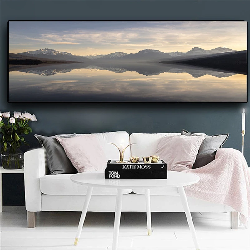 Картины на стену с классическим пейзажем, горами и озерами, холст, ...