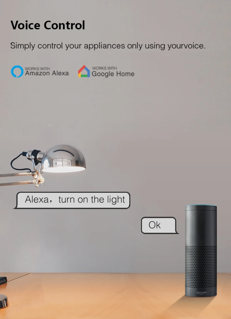ЭтоУмная вилка позволяет Голосовое управление с помощью Alexa/Google. ПростойИ быстрая работа путем сканирования qr-кода для загрузки приложения (app Store/Магазин Google play)