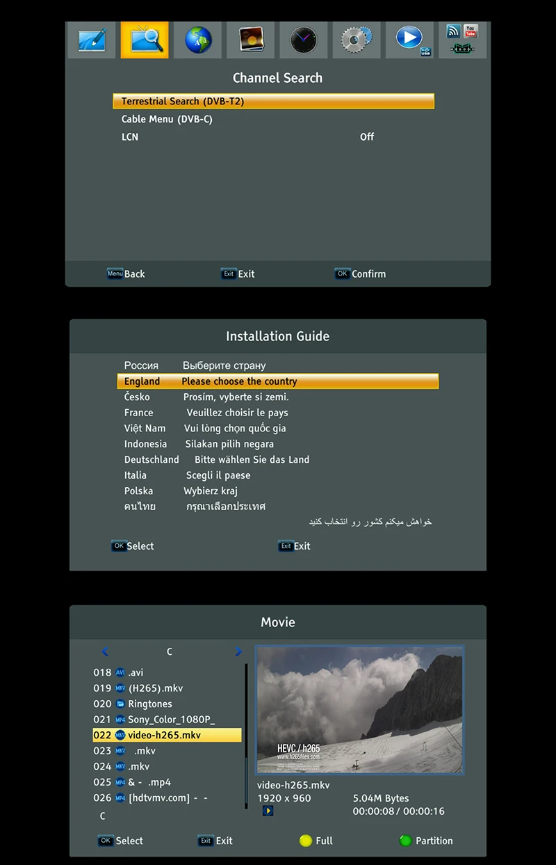 Перед покупкой обратите внимание, подходит ли устройство для локального использования. Устройство может принимать и настраивать только Бесплатные Сигналы с частотой H2.65 и ниже и не поддерживает аудио ac3. Некоторые итальянские и испанские каналы недоступны. Пожалуйста, проверьте перед покупкой. Поддерживает ли локальная частота это устройство, с наилучшими пожеланиями.