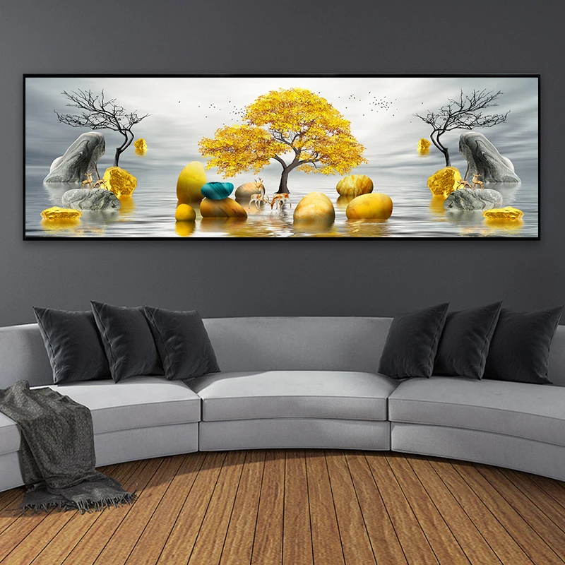 Современное Золотое абстрактное искусство, золотое дерево и камень, живопись, настенное искусство для гостиной, домашний декор (без рамки)
