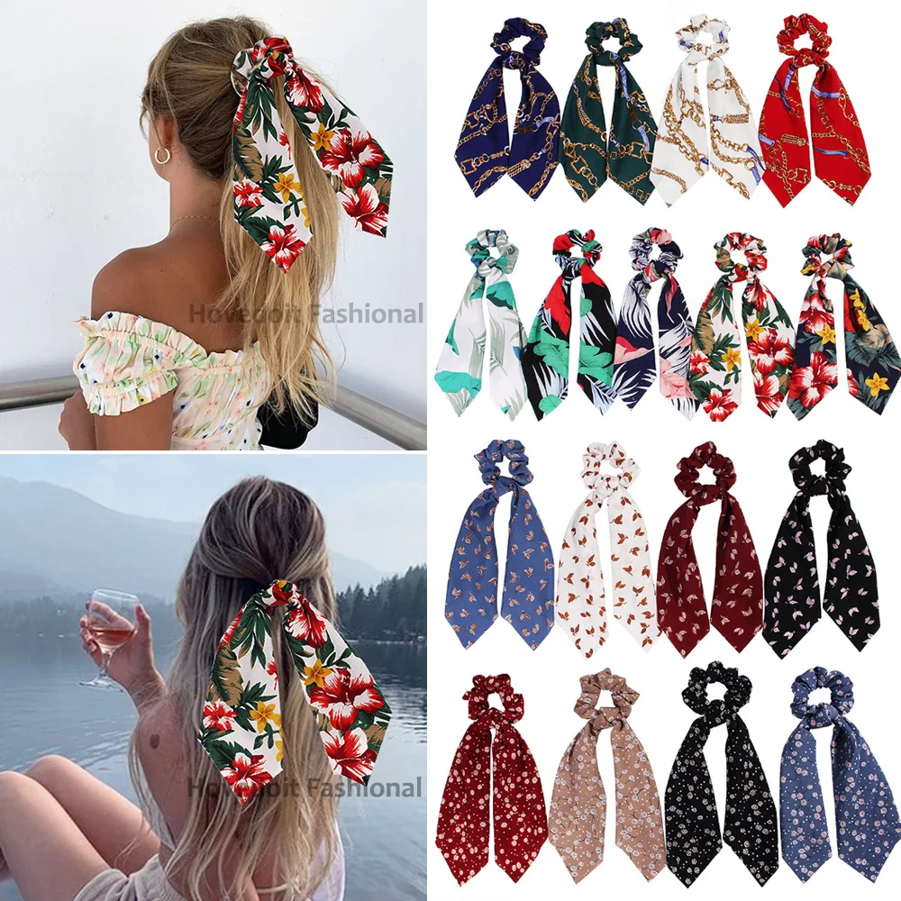 Резинка для волос с богемным принтом женская, модная эластичная лента для фиксации волос хвостиком, летние аксессуары для волос