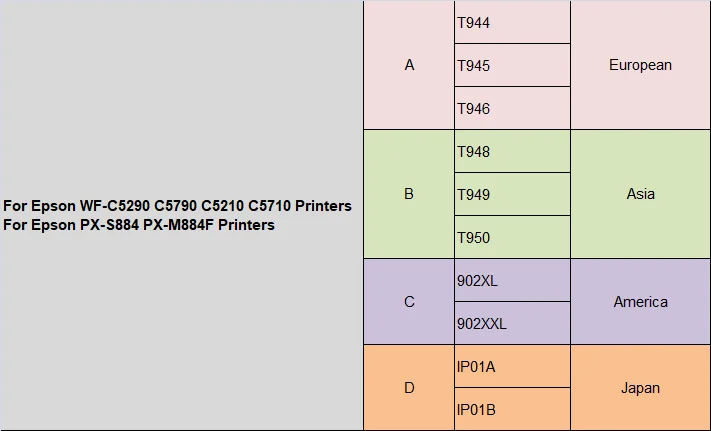 Принтеры: используются для принтеров Epson Workforce WF-C5210 C5710 C5290 C5790