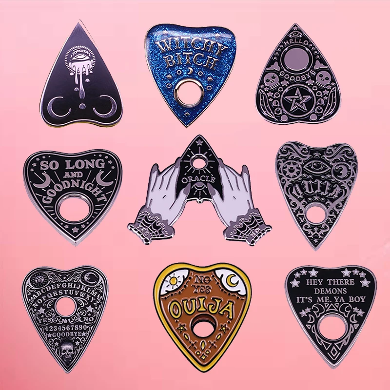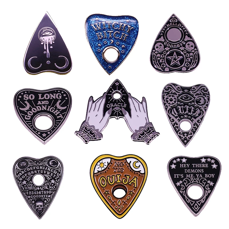 Булавка в форме сердца Ouija, коллекция ведьм, языческая спиртовая доска, плоский значок, металлическая брошь