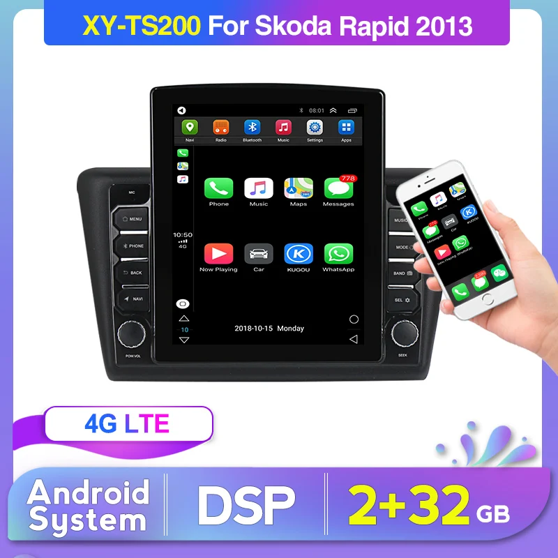 Автомагнитола 2 DIN, мультимедийный видеопроигрыватель для Skoda Rapid 2013, 2014, 2015, 2016, 2017, 2018, 2019, 4G, Android, навигация, GPS, аудио, 2 DIN